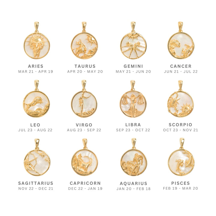 This Virgo, Gold Zodiac Necklace by Freya Rose is a beautiful tribute to the practical and analytical nature of the Virgo. The 18ct gold-plated sterling silver pendant, featuring a Mother of Pearl inlay, reflects your keen eye for detail and appreciation for simplicity. This necklace is an ideal accessory for those who value precision and want a piece that is both beautiful and meaningful.