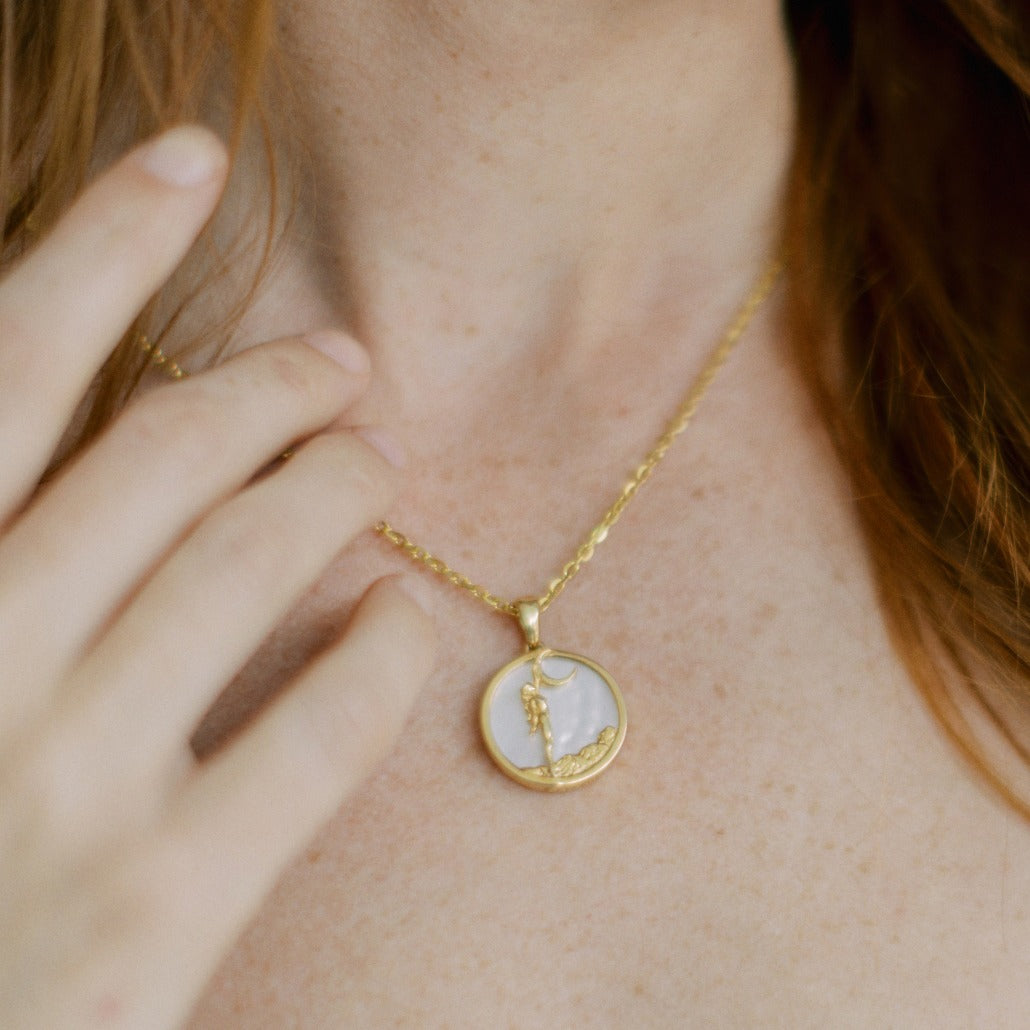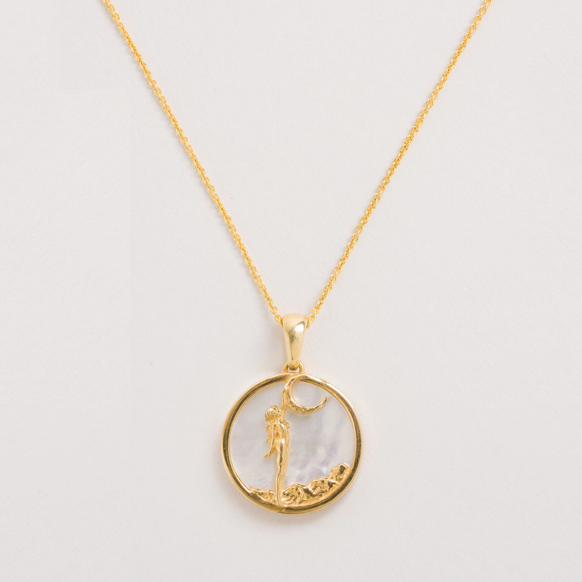 This necklace is crafted from 18ct gold-plated sterling silver and features a Mother of Pearl inlay.