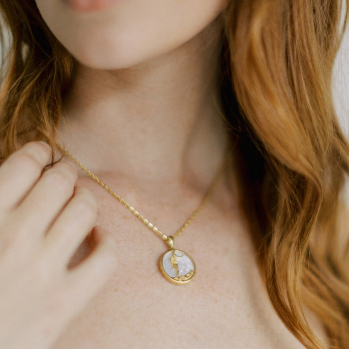 This Virgo, Gold Zodiac Pendant by Freya Rose is a beautiful tribute to the practical and analytical nature of the Virgo. The 18ct gold-plated sterling silver pendant, featuring a Mother of Pearl inlay, reflects your keen eye for detail and appreciation for simplicity. This pendant is an ideal accessory for those who value precision and want a piece that is both beautiful and meaningful.