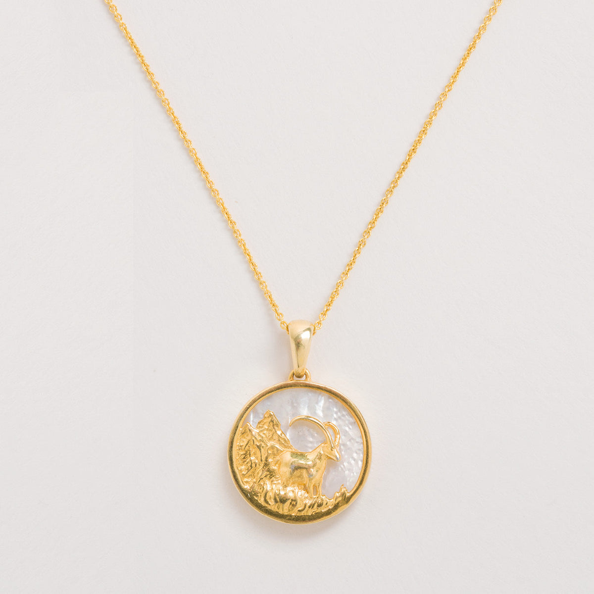 This Capricorn, Gold Zodiac Necklace by Freya Rose is a beautiful tribute to the disciplined and ambitious nature of the Capricorn. The 18ct gold-plated sterling silver pendant, featuring a Mother of Pearl inlay, resonates with your determined and pragmatic nature. This necklace is perfect for those who respect perseverance and appreciate jewelry that embodies strength and sophistication.