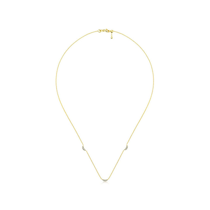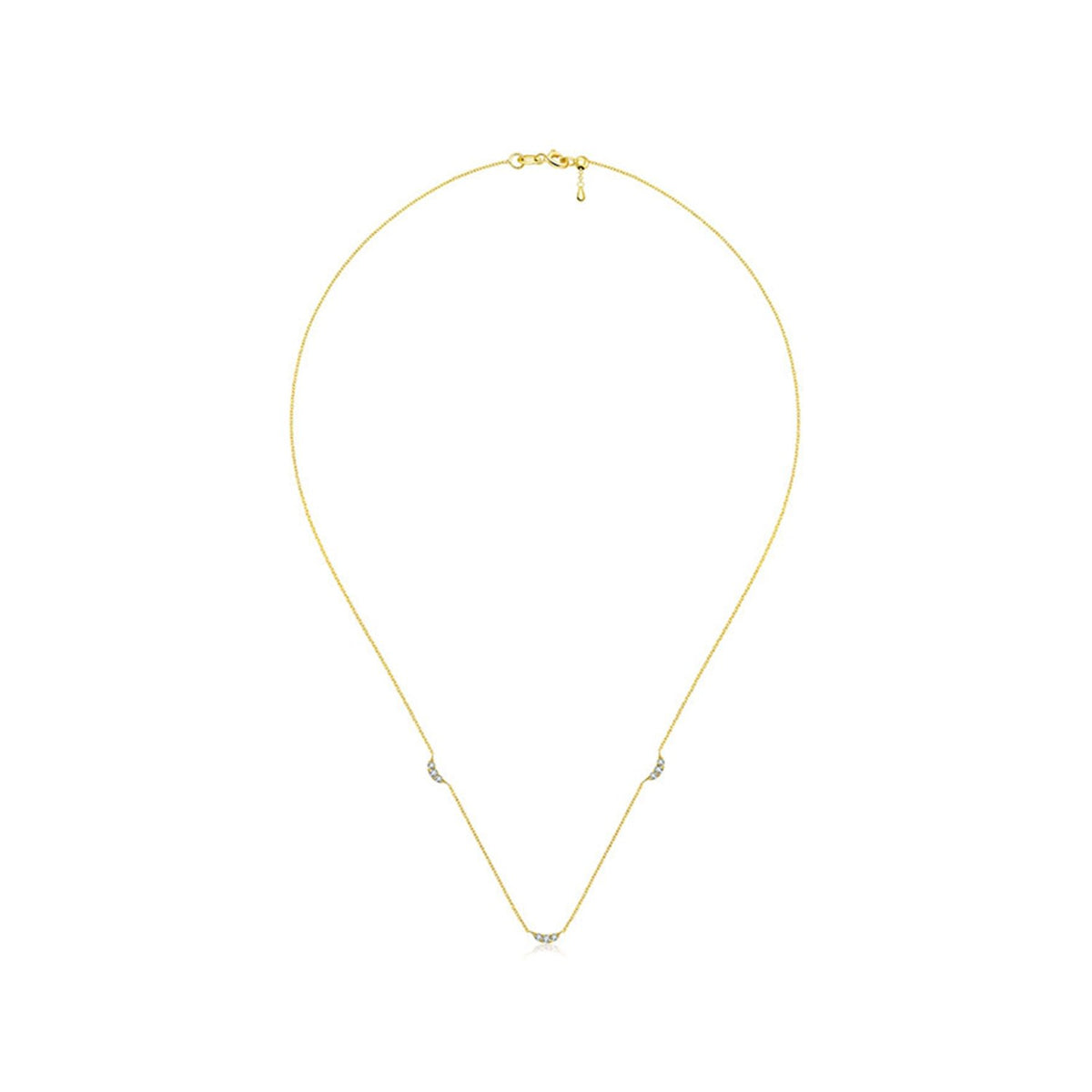 This necklace is crafted from 18k yellow gold and features 9 claw-set diamonds with a total carat weight of 0.10ct. The total gold weight is 1.90g.
