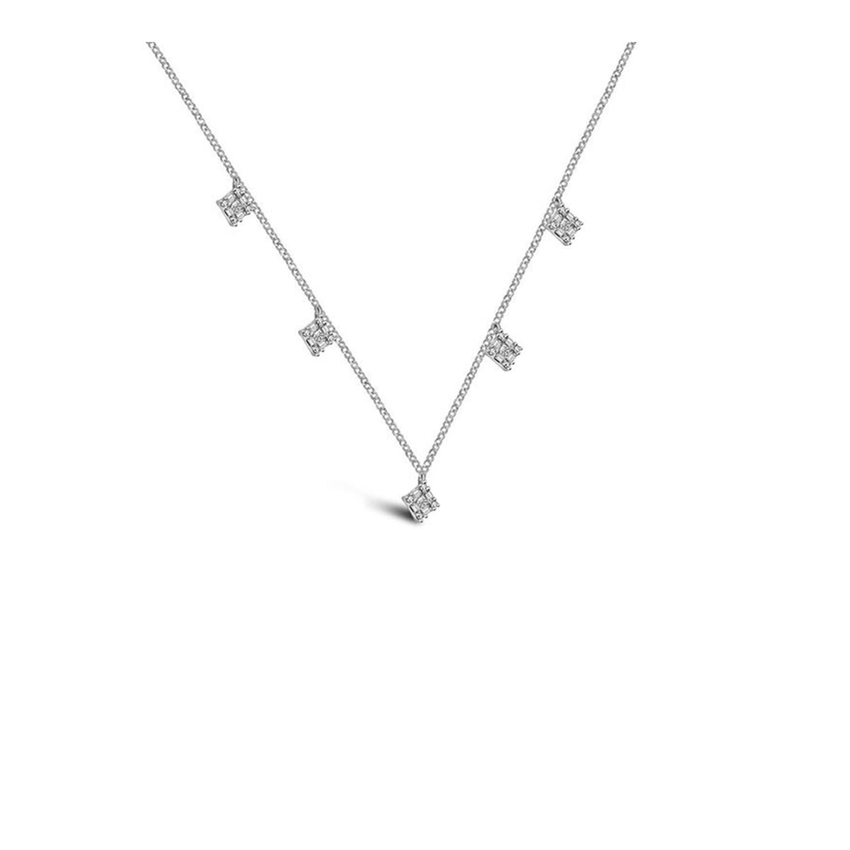 18K White Gold Rhombus Shape Diamond Necklace / Choker