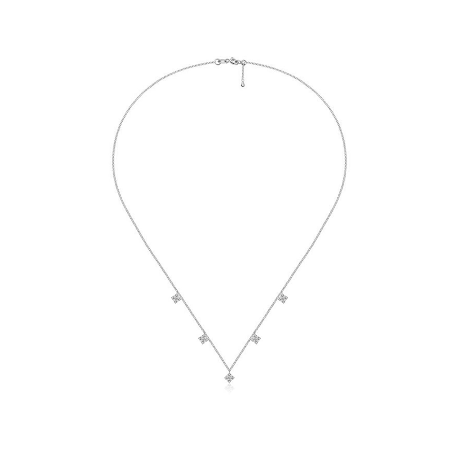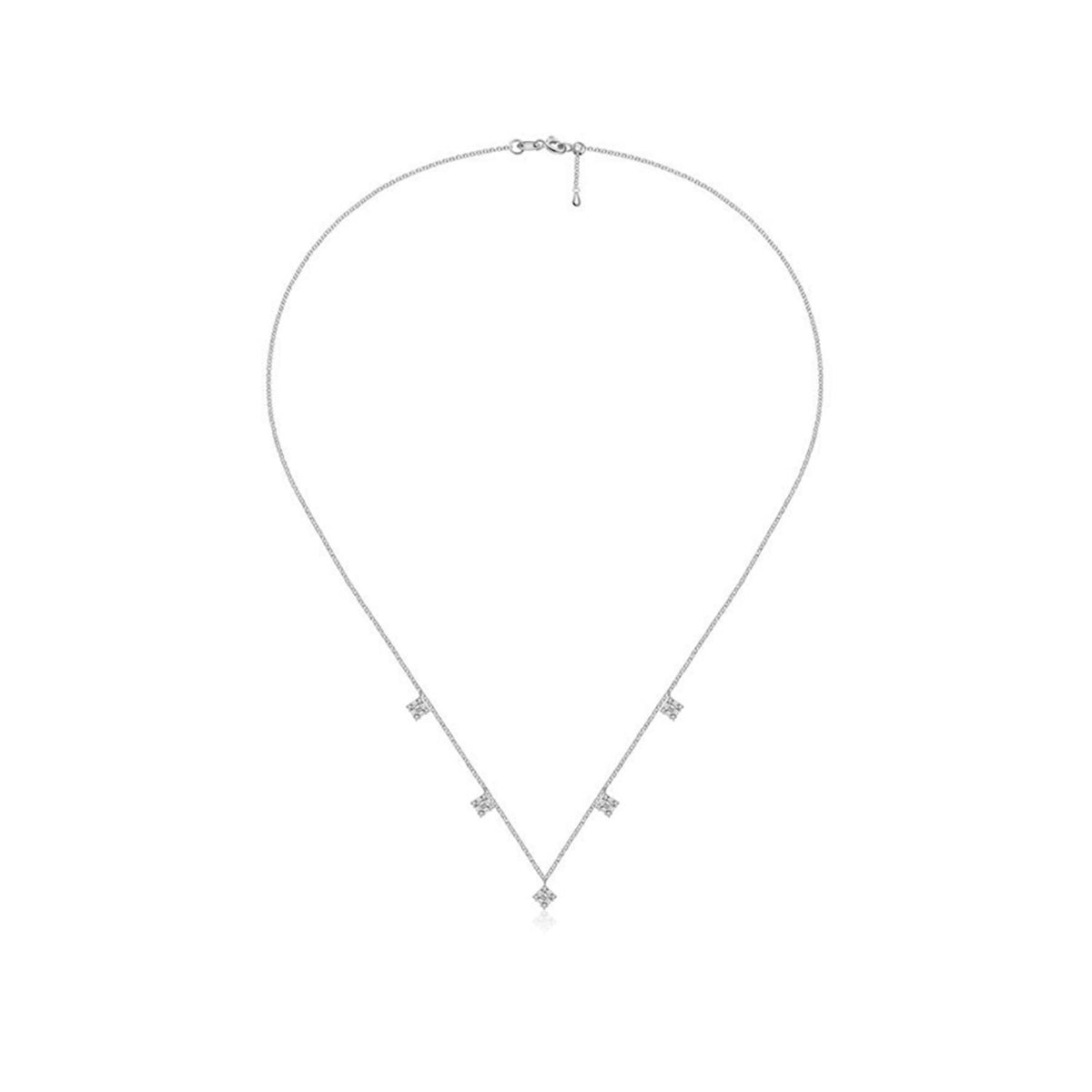 This necklace is crafted from 18k white gold and features 45 claw-set diamonds with a total carat weight of 0.30ct. The total gold weight is 2.40g.