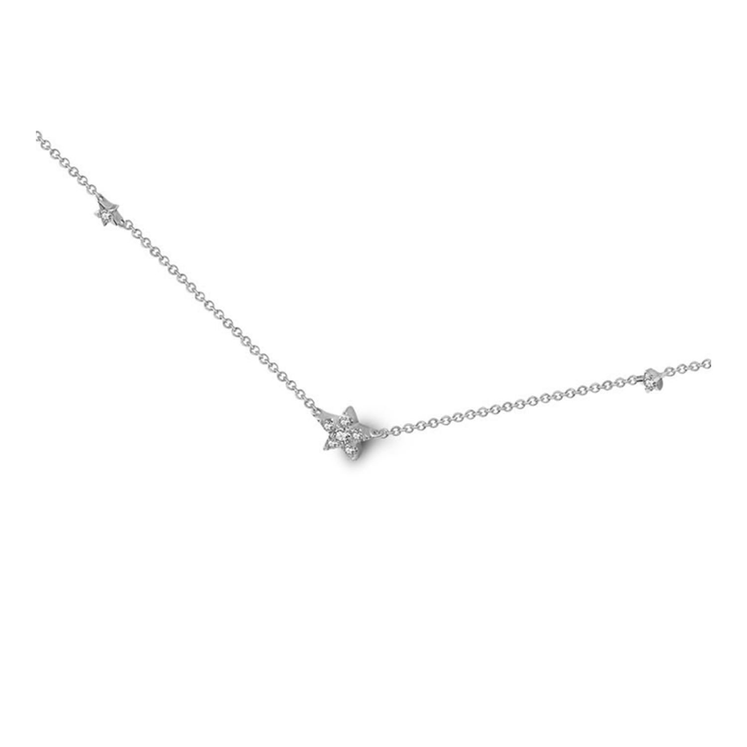 This necklace is crafted from 18k white gold and features eight claw-set diamonds with a total carat weight of 0.10ct. The total gold weight is 1.90g.