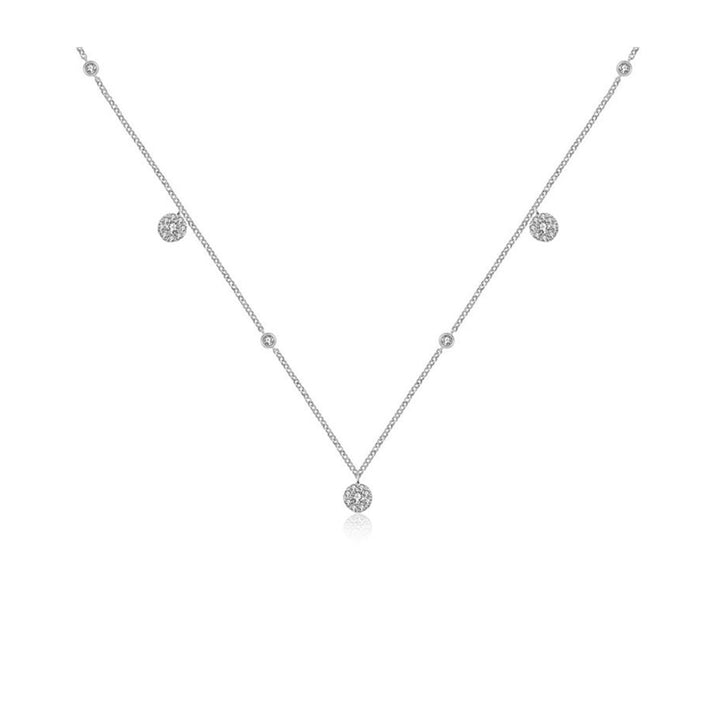 This necklace is crafted from 18k white gold and features 49 diamonds with a total carat weight of 0.40ct. The total gold weight is 2.90g.