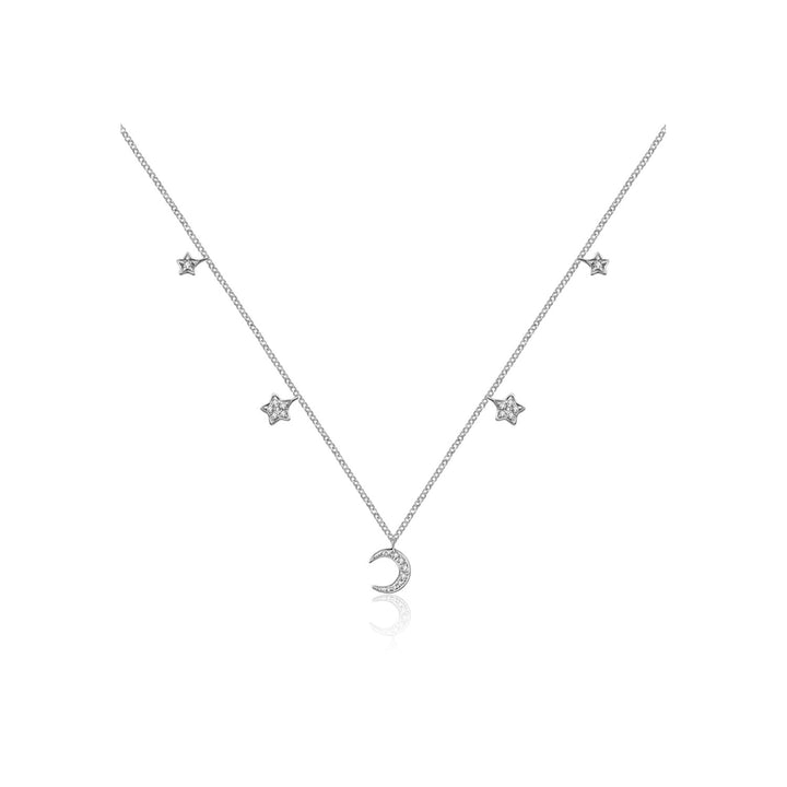 18K White Gold Moon & Star Shape Diamond Necklace Choker