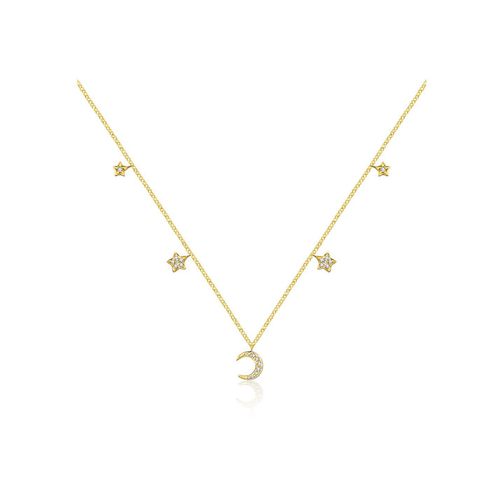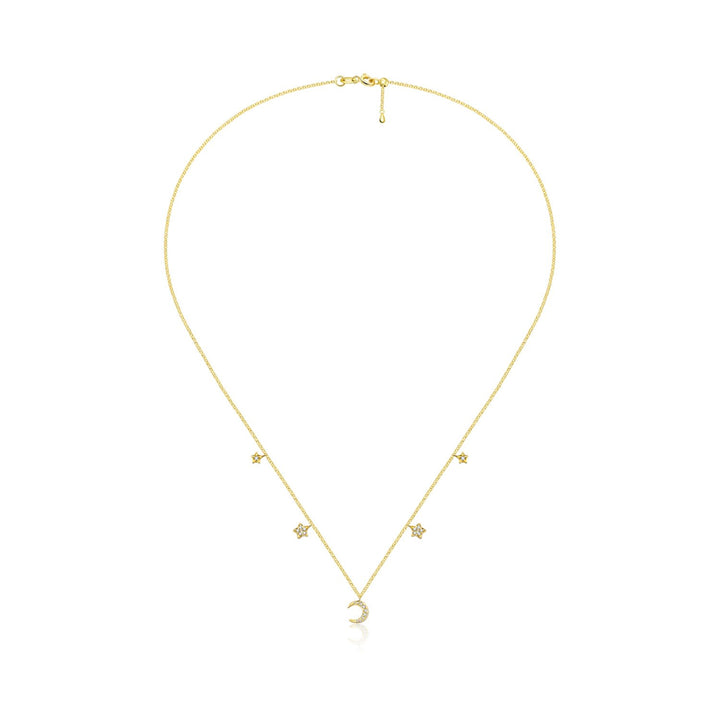 18K Yellow Gold Moon & Star Shape Diamond Necklace Choker