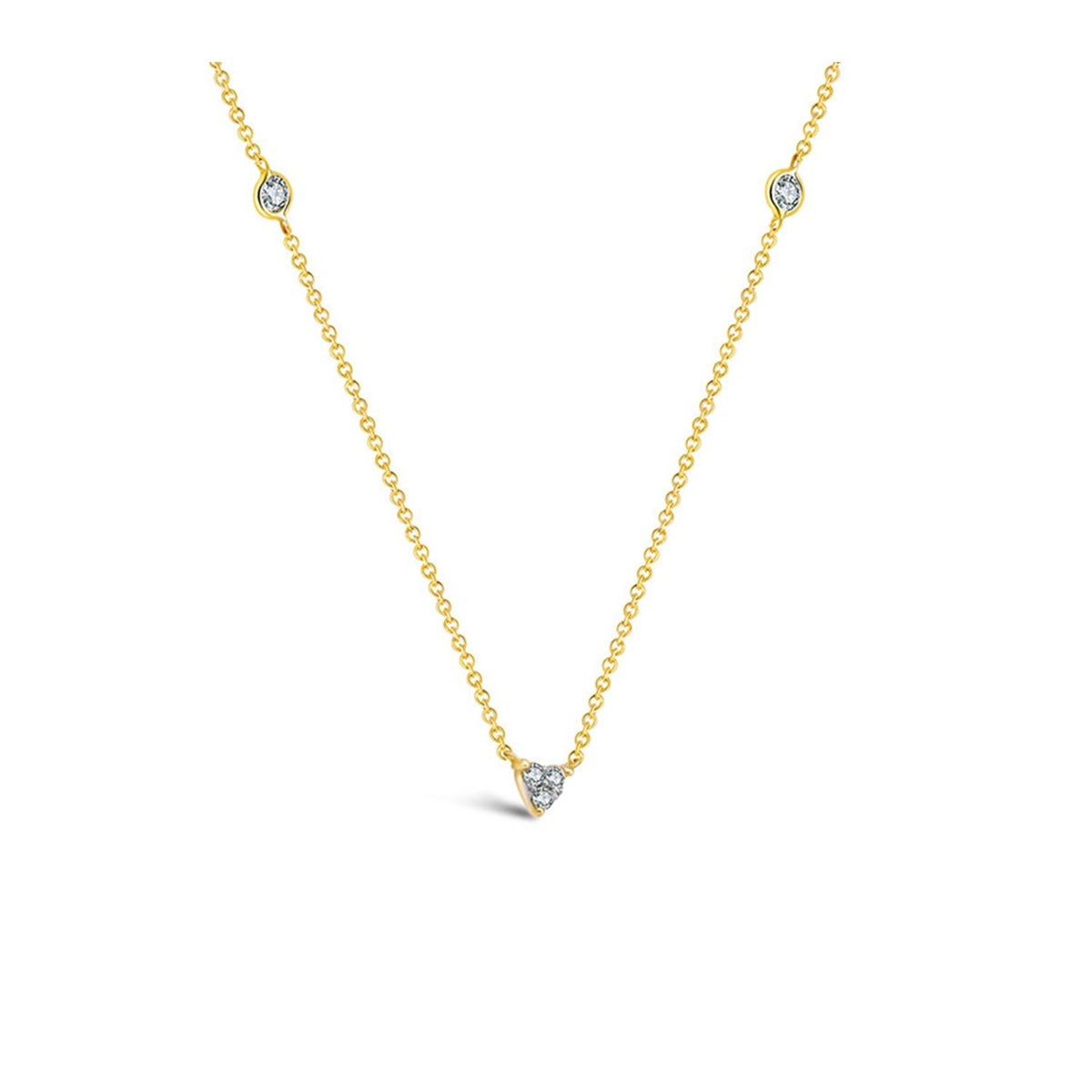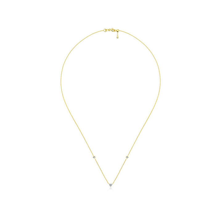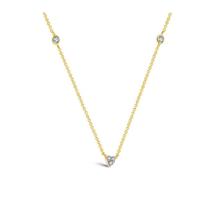 This pendant necklace is crafted from 18k gold and features five diamonds with a total carat weight of 0.10ct. The total gold weight is 1.80g.