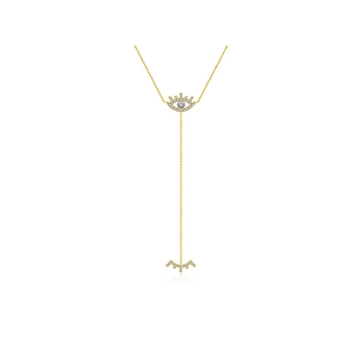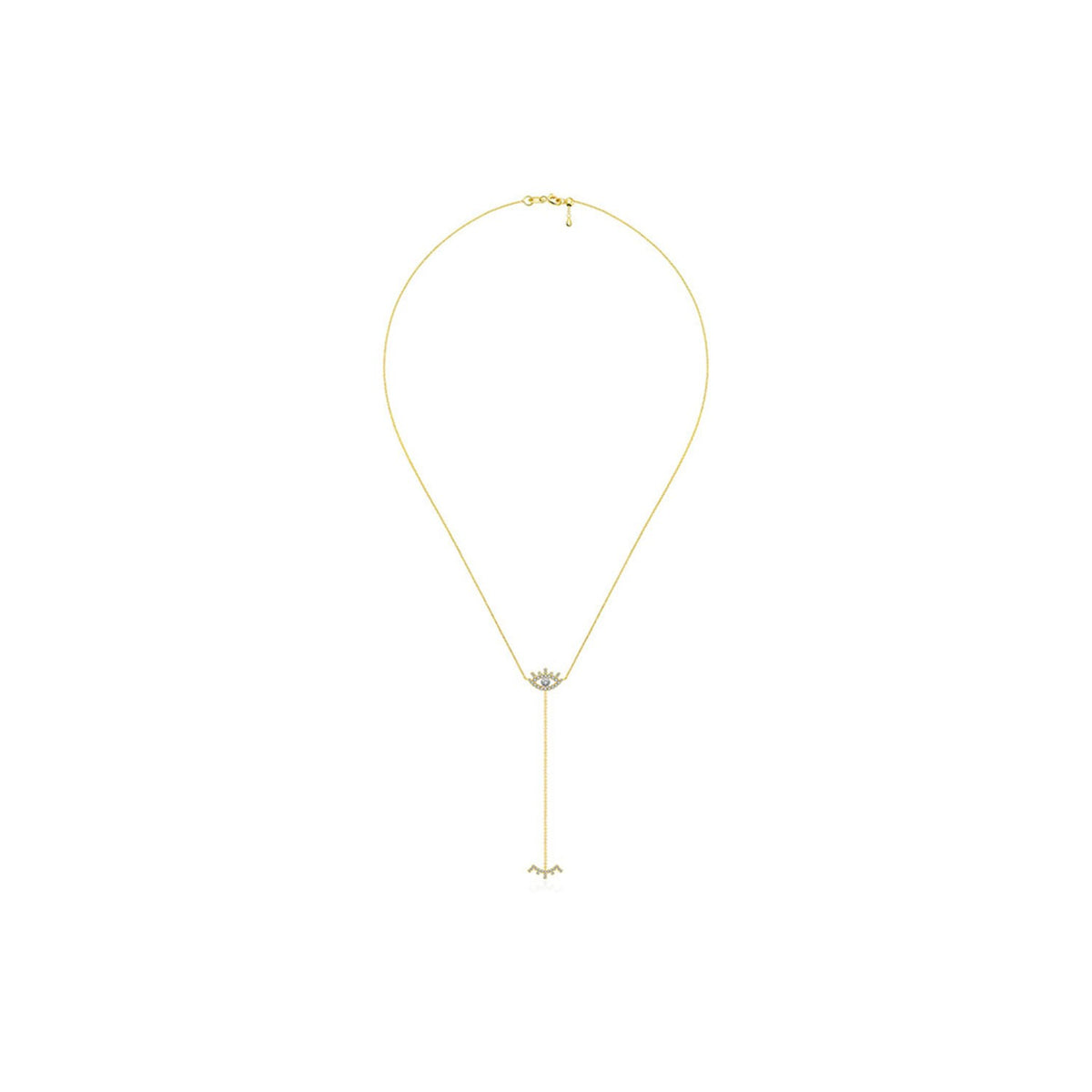 18K Yellow Gold Evil Eye Diamond Dangle Necklace