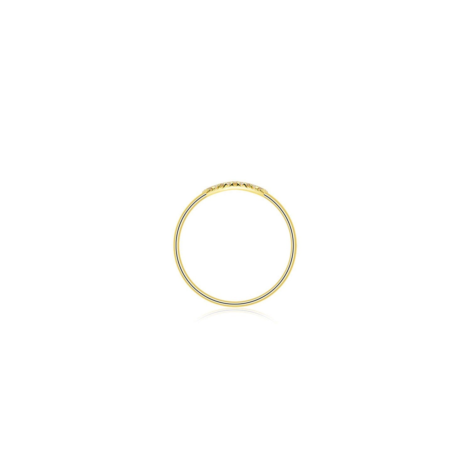 This initial ring is crafted from 18k gold and features 17 round diamonds, totaling 0.07 CT. It has an eyelash shape.