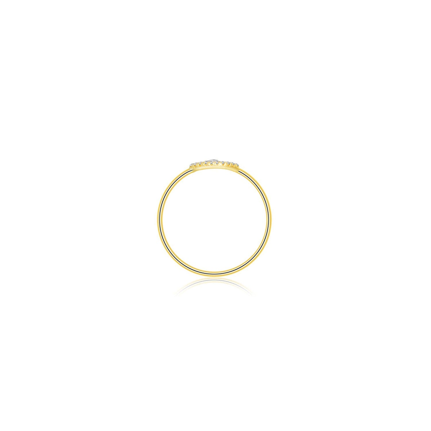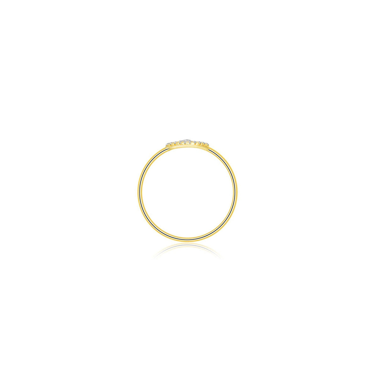 Crafted from 18k yellow gold, this ring features 11 round diamonds with a total carat weight of 0.04 CT, set in a pavé style. It has a total metal weight of 0.70g and is inscribed with the 18k mark and the Genevieve Collection's logo.