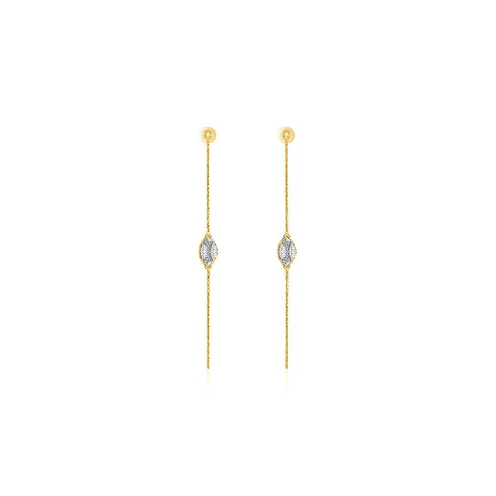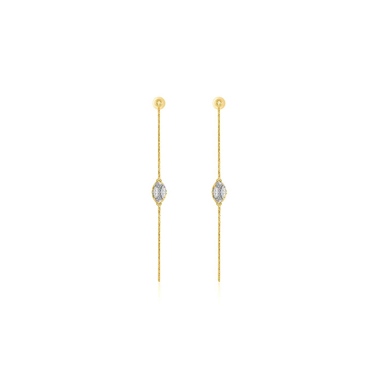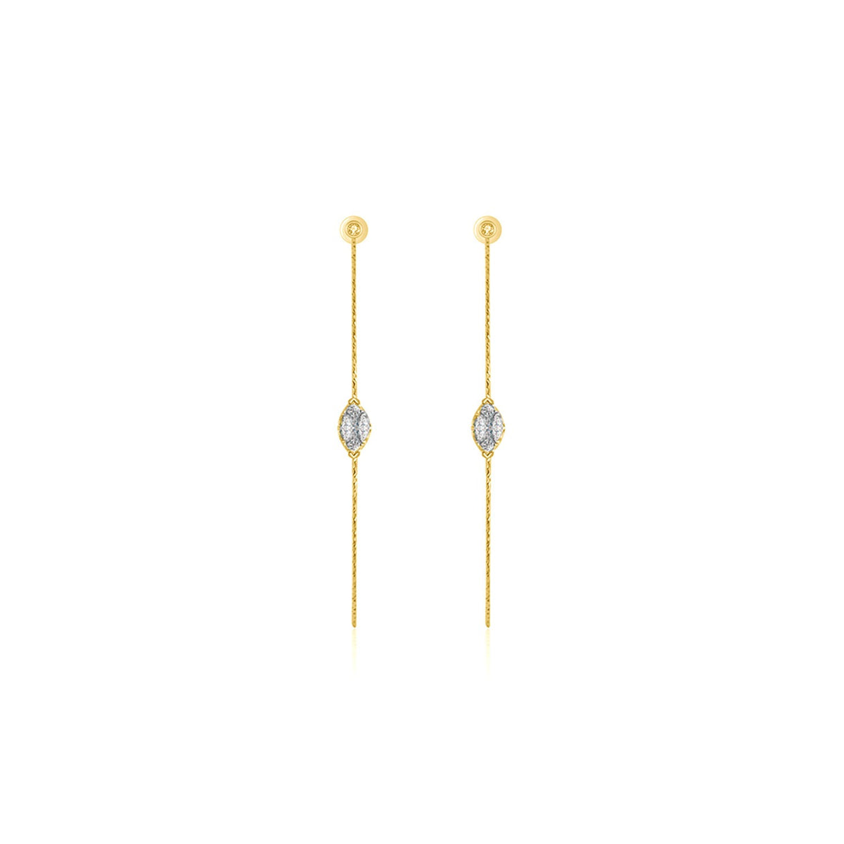 These 18K Yellow Gold Marquise Shape Hoop Earring by Genevieve Collection are a stunning and modern take on a classic hoop. The marquise shape and the intricate claw and bezel setting of the diamonds create a sophisticated and eye-catching look. These hoops are perfect for adding a touch of luxurious elegance and contemporary flair to any outfit.