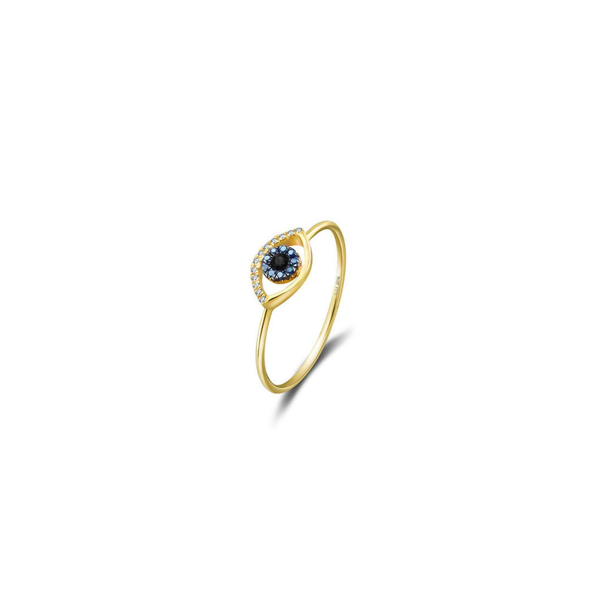18K Yellow Gold Evil Eye Sapphire Diamond Ring