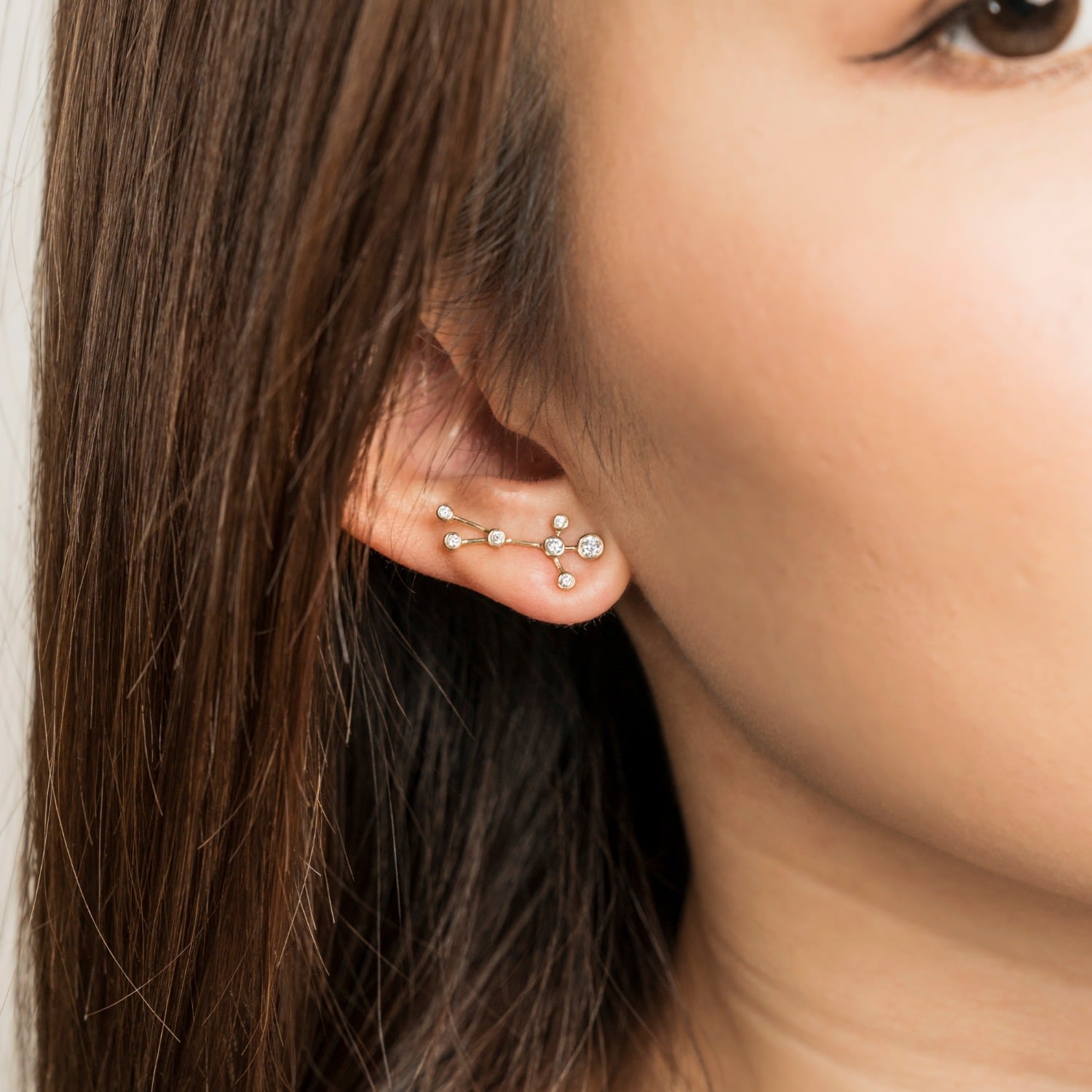 This Gemini Zodiac Constellation Earing by Genevieve Collection is the perfect gift for the witty and adaptable Gemini. Handcrafted by experienced jewelers, this elegant stud earring features the Gemini constellation in sparkling diamonds set in solid 18k white gold. It is a subtle yet luxurious way to celebrate your zodiac sign, making it a timeless piece that will last a lifetime.
