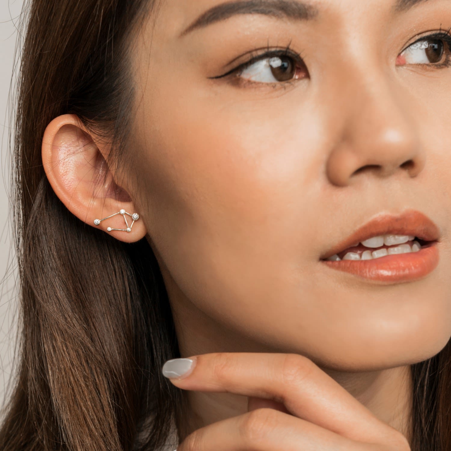 Libra Zodiac Constellation Earring 18K White Gold & Diamond