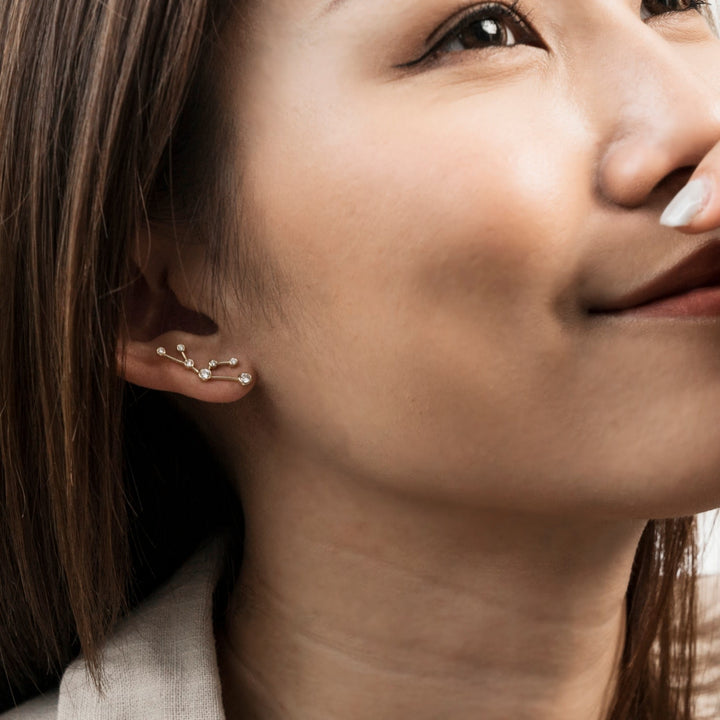 Taurus Zodiac Constellation Earring 18K Yellow Gold & Diamond