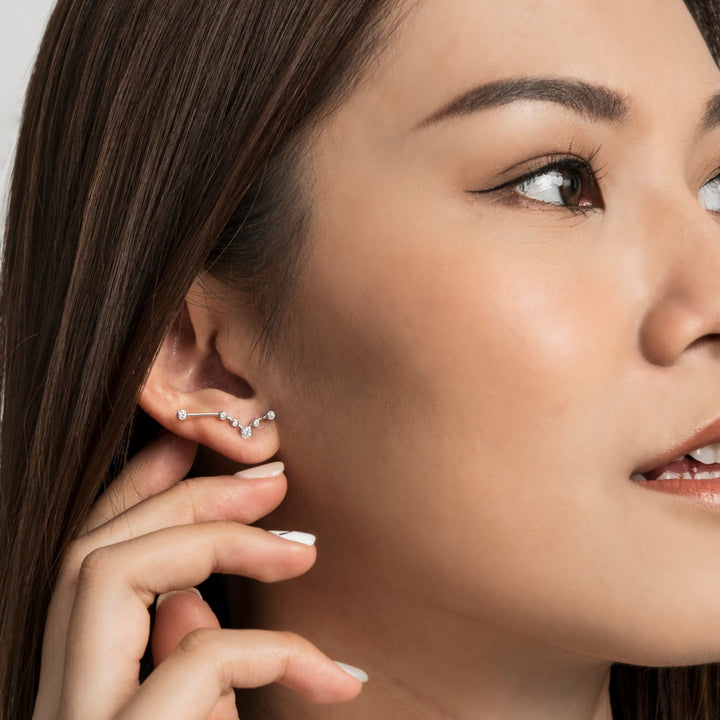 This Pisces Zodiac Constellation Earring by Genevieve Collection is a beautiful tribute to the intuitive and compassionate Pisces. This elegant stud earring features the Pisces constellation in sparkling diamonds set in solid 18k yellow gold. It's a subtle yet luxurious way to celebrate your zodiac sign, making it a timeless piece that will last a lifetime.