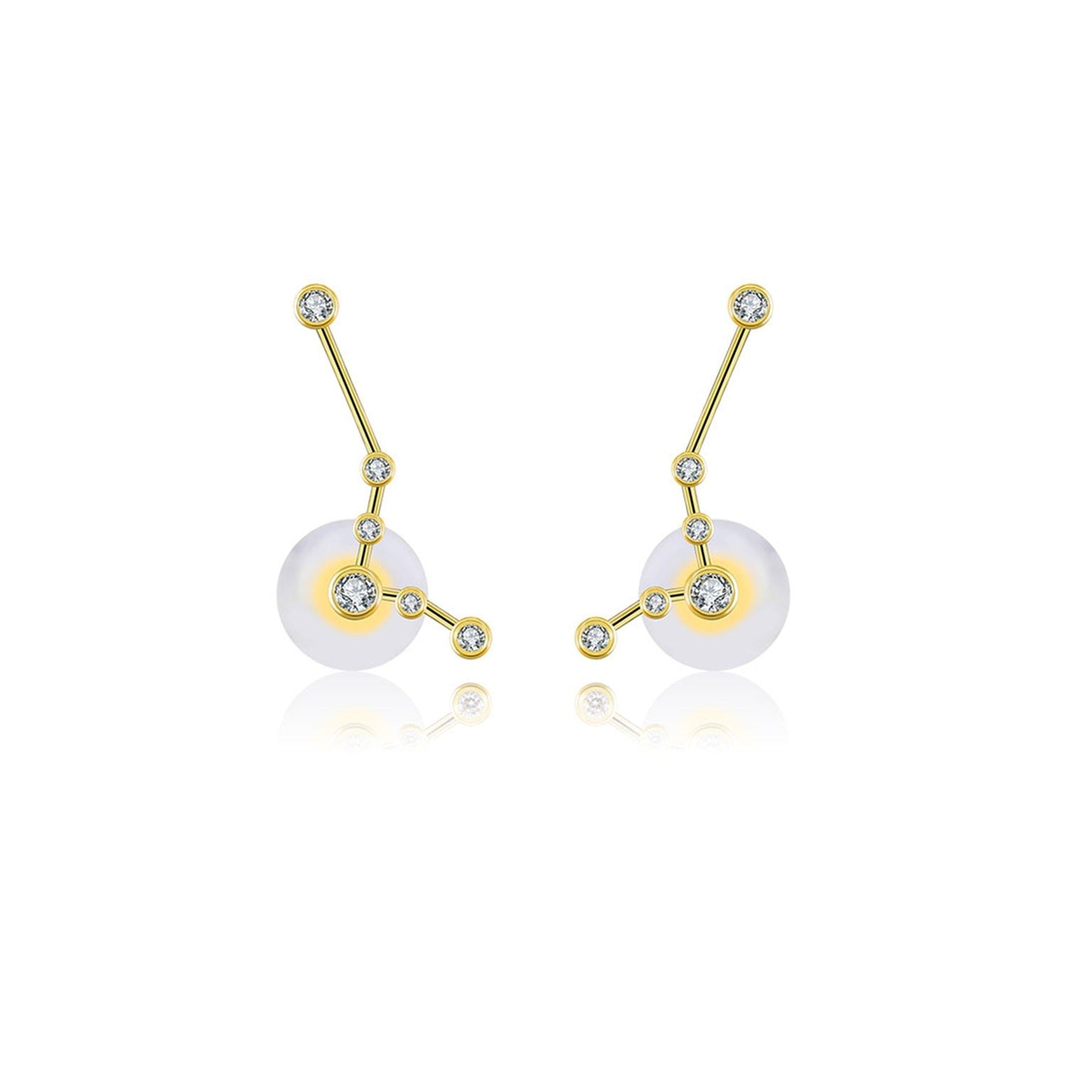 Pisces Zodiac Constellation Earring 18K Yellow Gold & Diamond