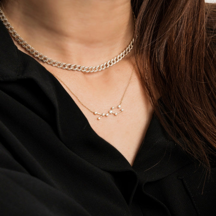 Gemini Zodiac Constellation Necklace 18K White Gold & Diamond