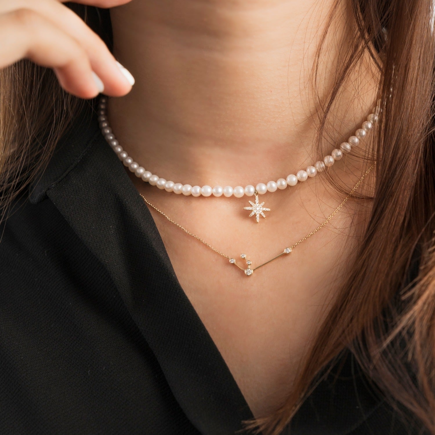 Aquarius Zodiac Constellation Necklace 18K White Gold & Diamond