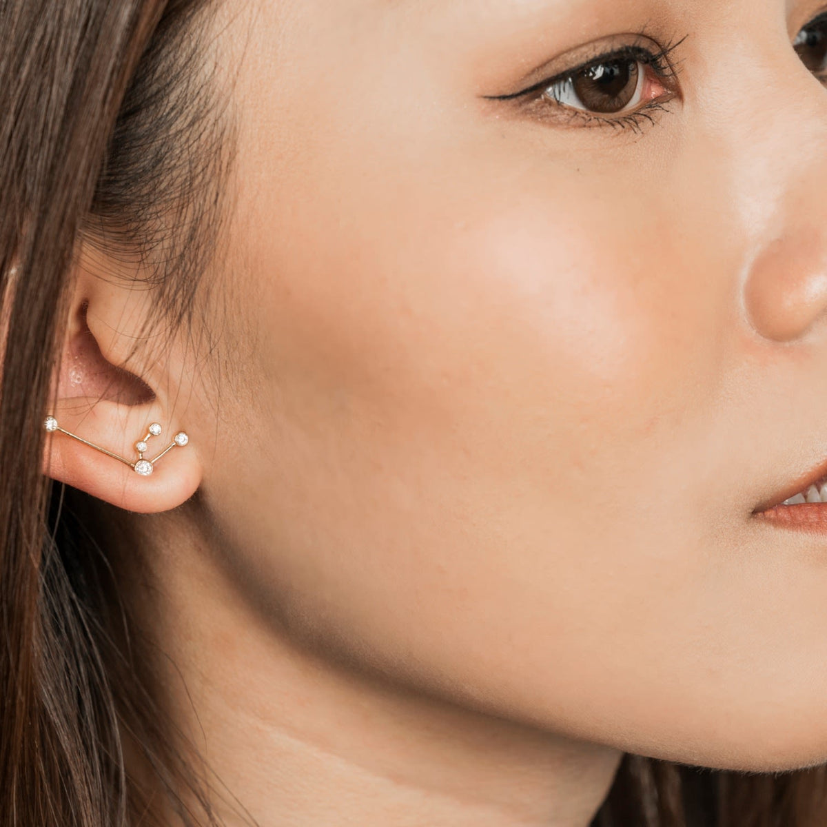 Aquarius Zodiac Constellation Earring 18K White Gold & Diamond