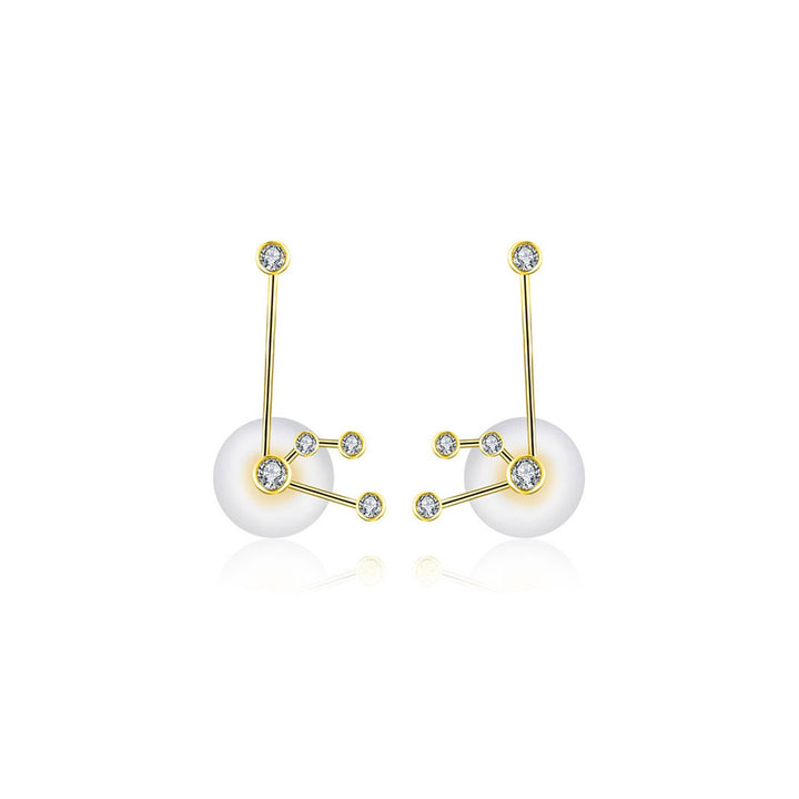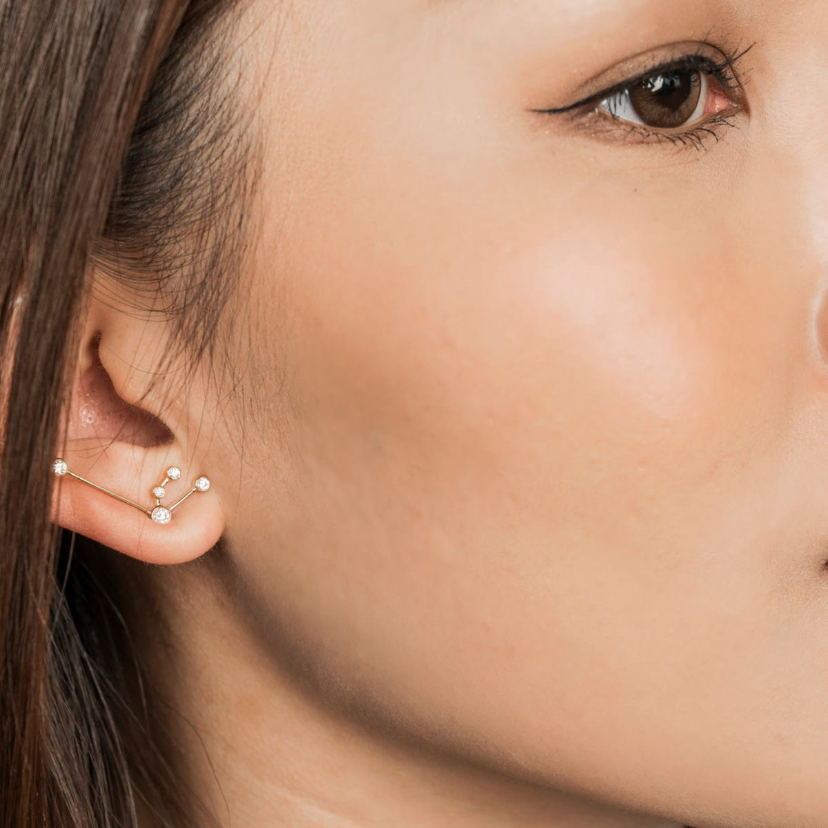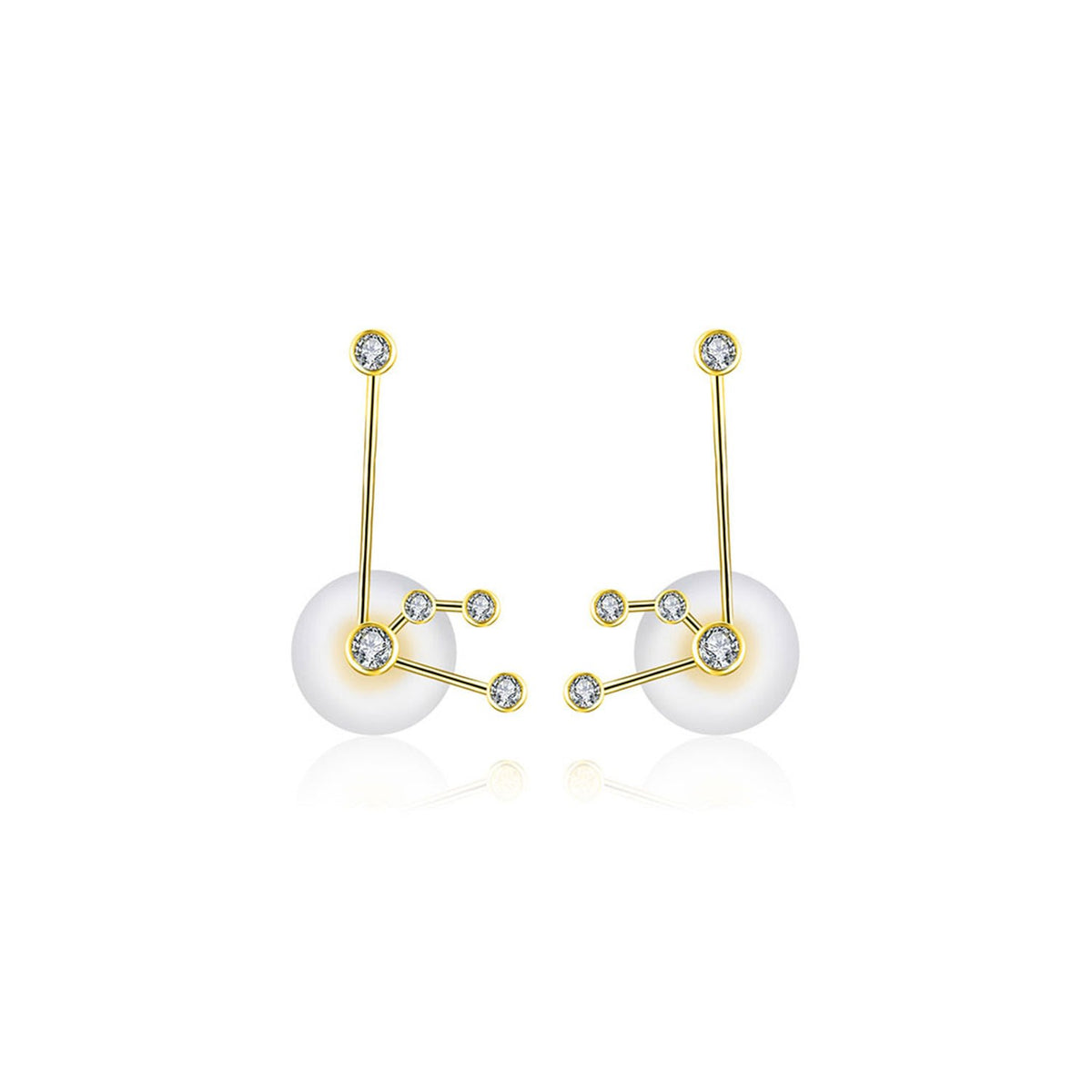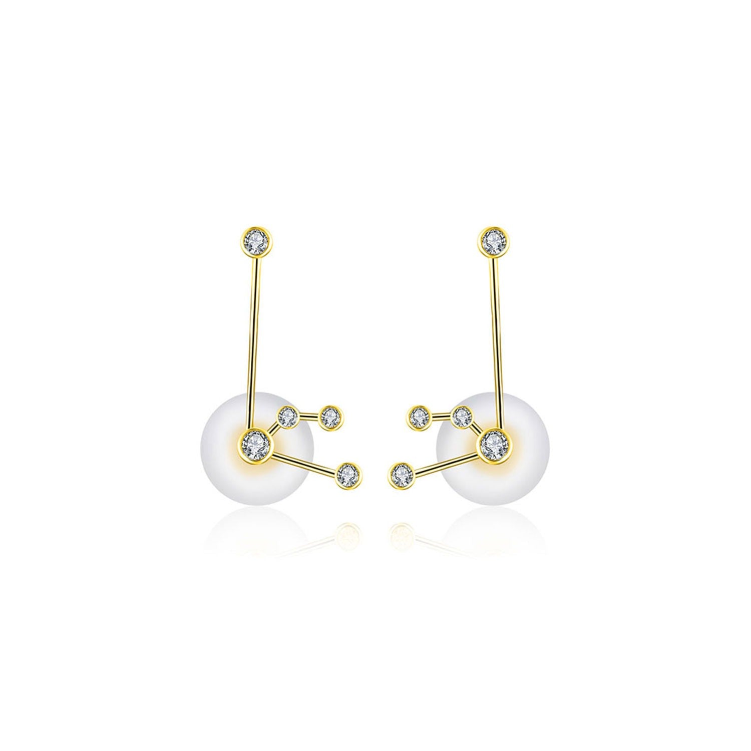 Aquarius Zodiac Constellation Earring 18K Yellow Gold & Diamond
