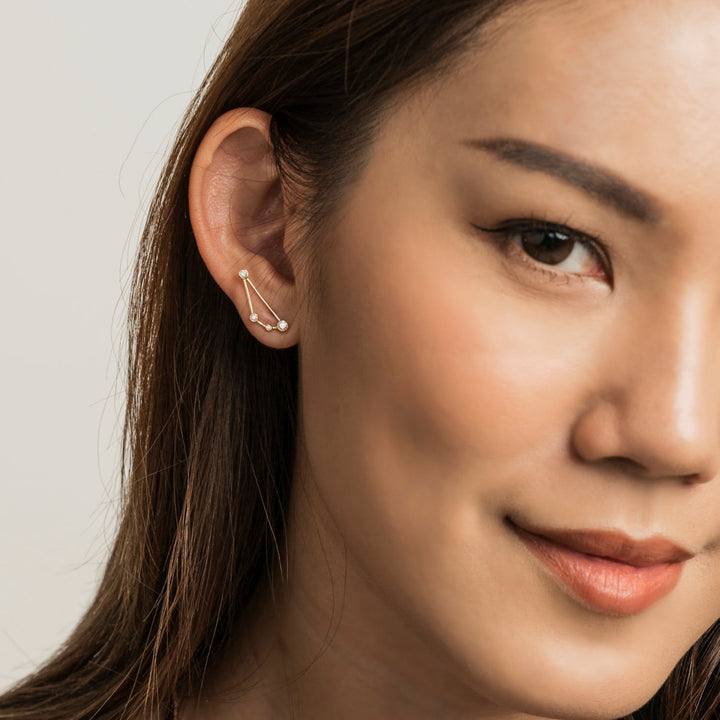 This Capricorn Zodiac Constellation Earring by Genevieve Collection is a beautiful tribute to the disciplined and ambitious Capricorn. This elegant stud earring features the Capricorn constellation in sparkling diamonds set in solid 18k white gold. It's a subtle yet luxurious way to celebrate your zodiac sign, making it a timeless piece that will last a lifetime.