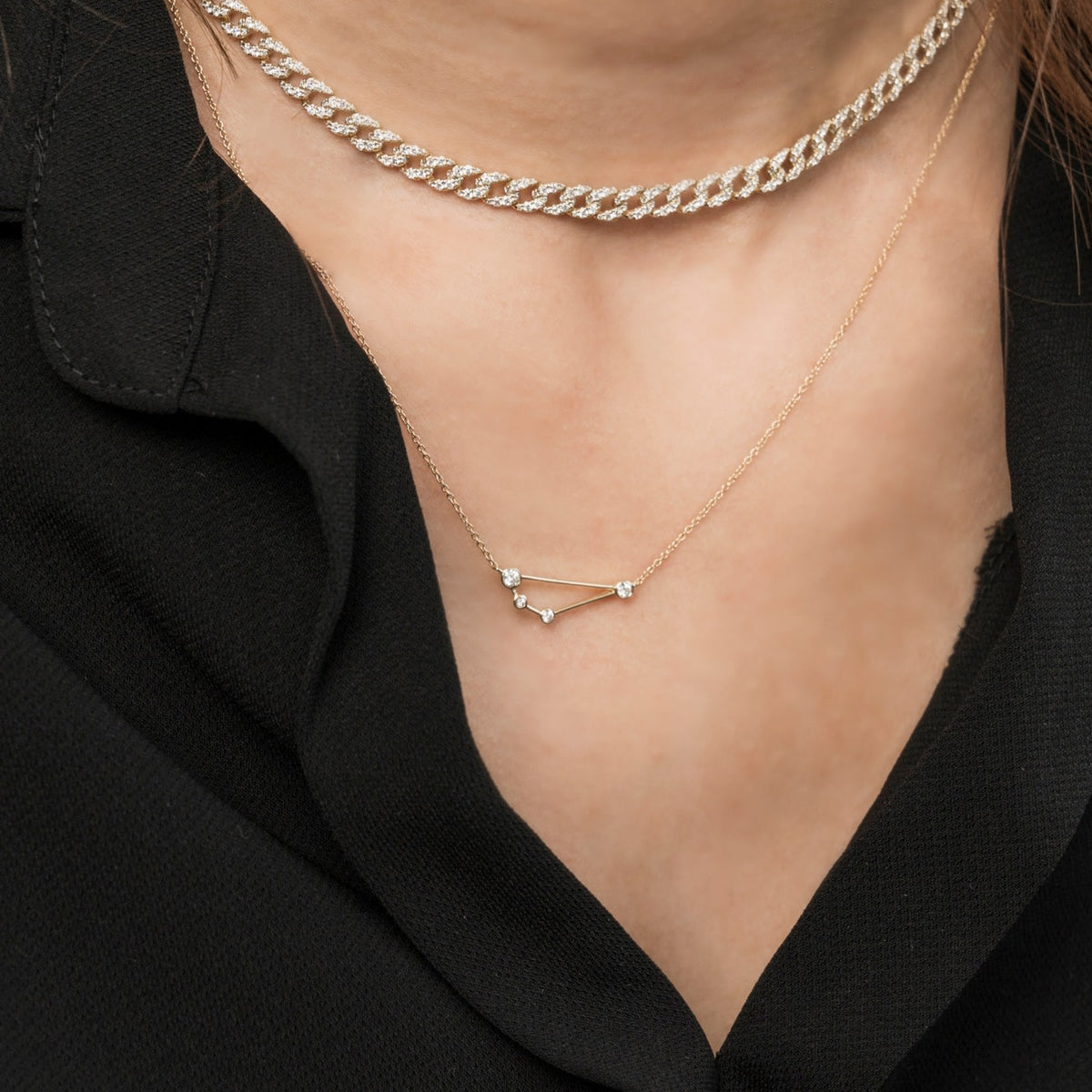 Capricorn Zodiac Constellation Necklace 18K White Gold & Diamond