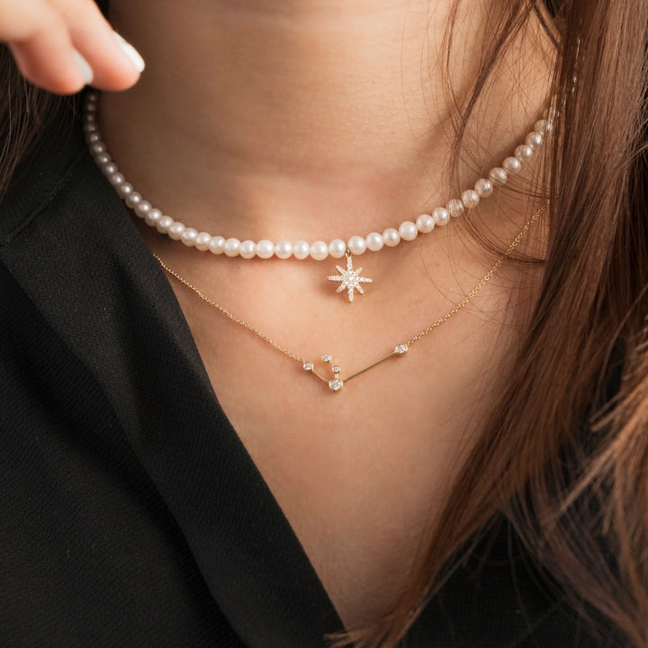 Aquarius Zodiac Constellation Necklace 18K Yellow Gold & Diamond