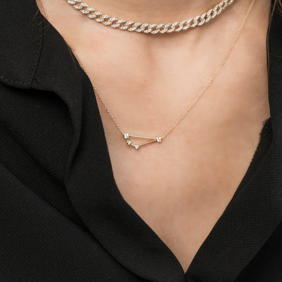 Capricorn Zodiac Constellation Necklace 18K Yellow Gold & Diamond