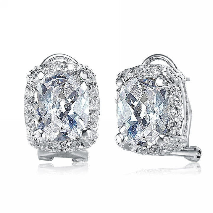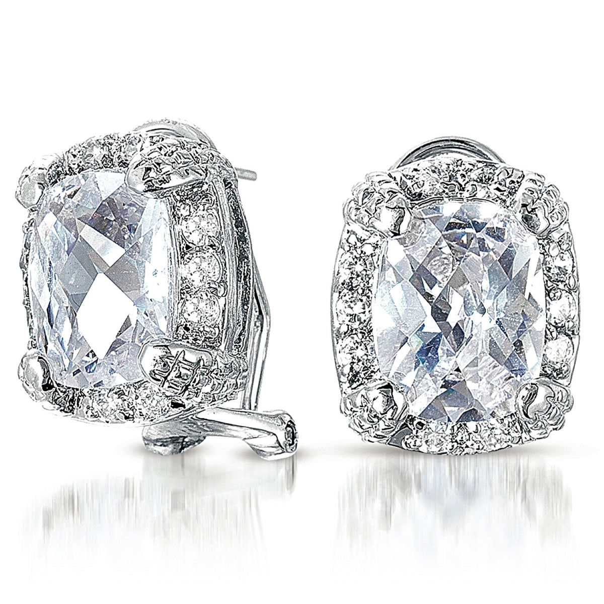 These Sterling Silver Cubic Zirconia Square Earrings by Genevive Jewelry are astonishing and incredible. They are sterling silver and highlight a cubic zirconia solitaire surrounded by a halo of smaller clear cubic zirconias. They are sure to capture hearts.