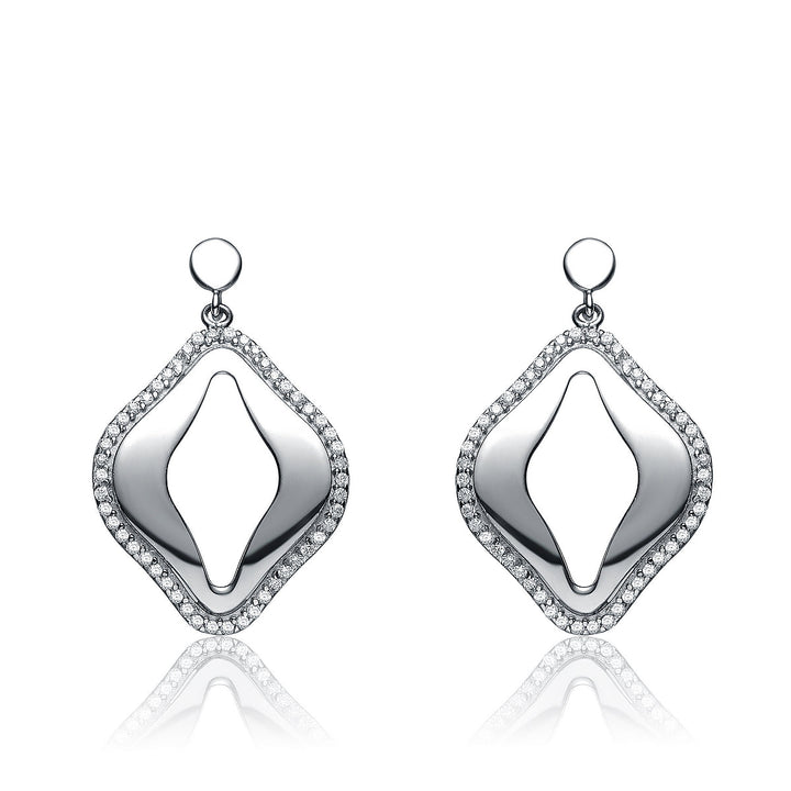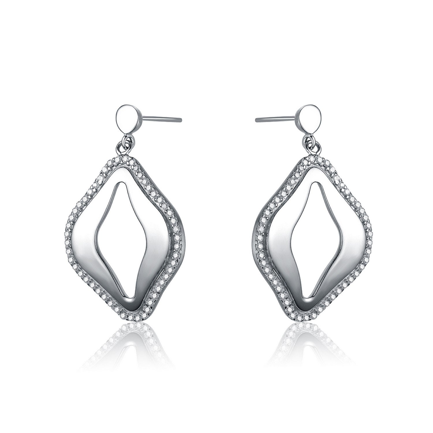 These dangle earrings are crafted from .925 sterling silver with cubic zirconias and secure with a butterfly clasp.