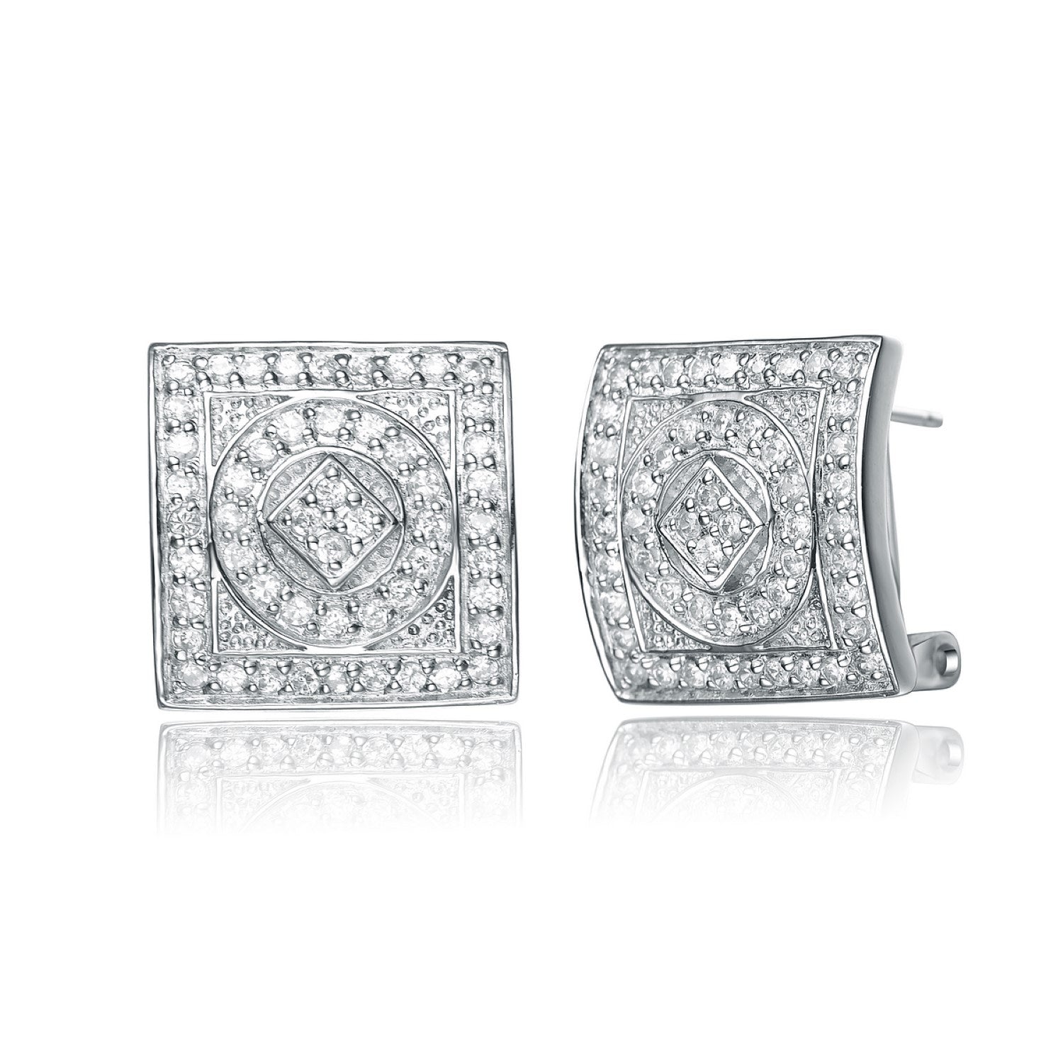 Sterling Silver Cubic Zirconia Pave Square Earrings