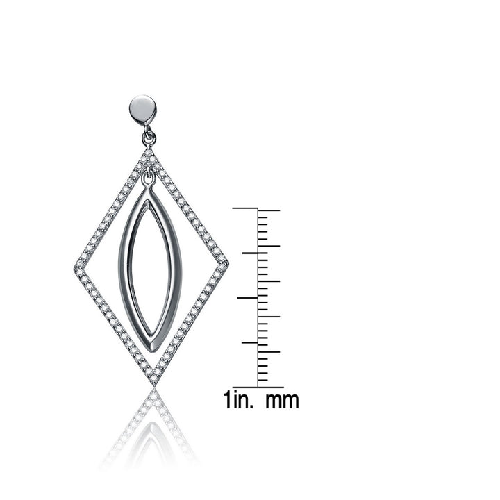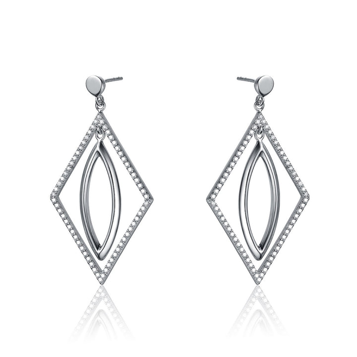 These dangle earrings are crafted from .925 sterling silver with cubic zirconia stones in oval and square shapes.