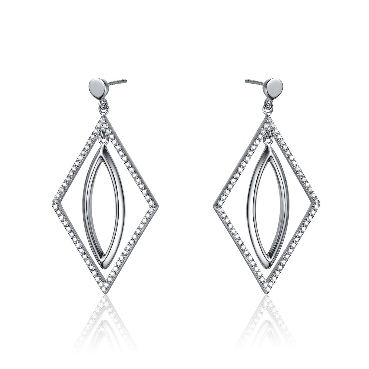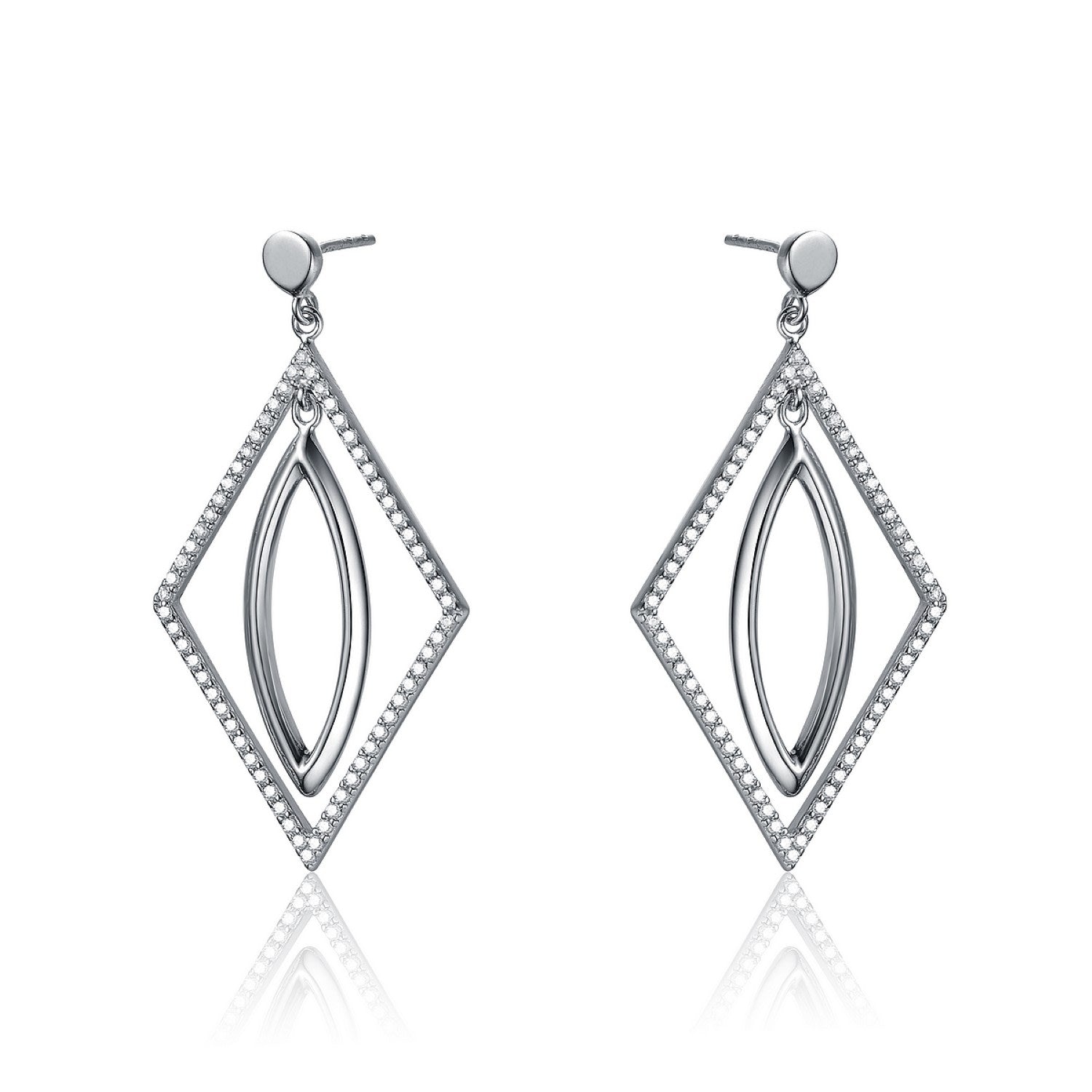These Sterling Silver Suspended Oval Earrings by Genevive Jewelry are a fun and stylish accessory. They combine oval and square shapes made from clear cubic zirconia stones and are a nice staple piece for your collection. They are crafted from .925 sterling silver and secure with a butterfly clasp.
