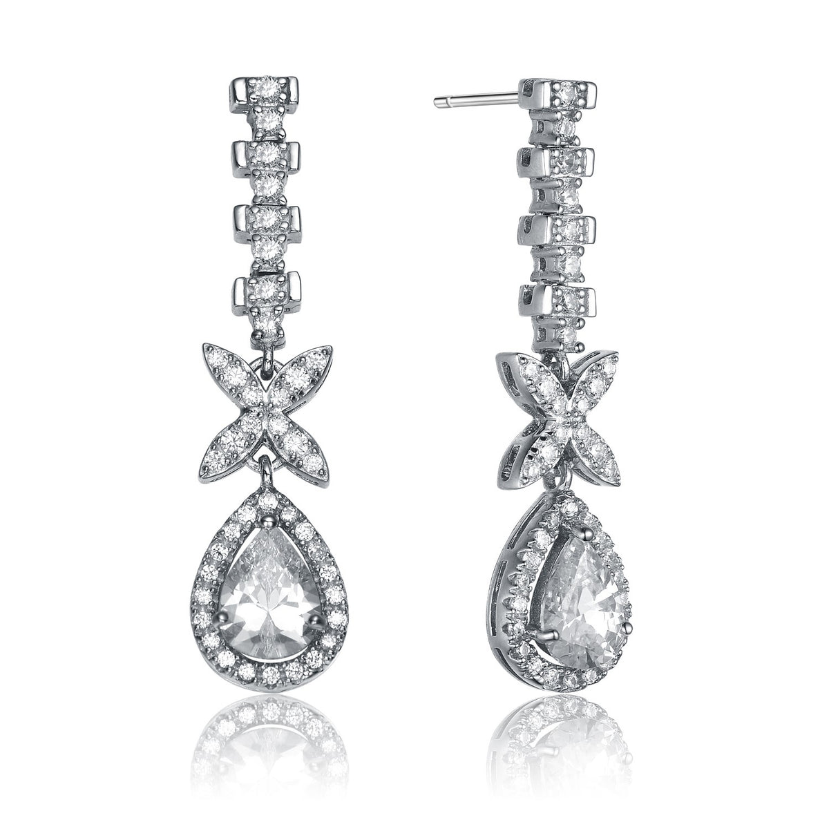 Sterling Silver Rhodium Plated Cubic Zirconia Dangle Earrings
