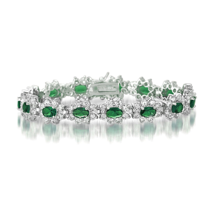 Sterling Silver Cubic Zirconia Bracelet With Green Stones