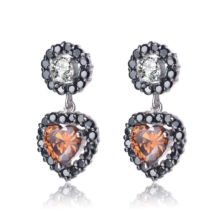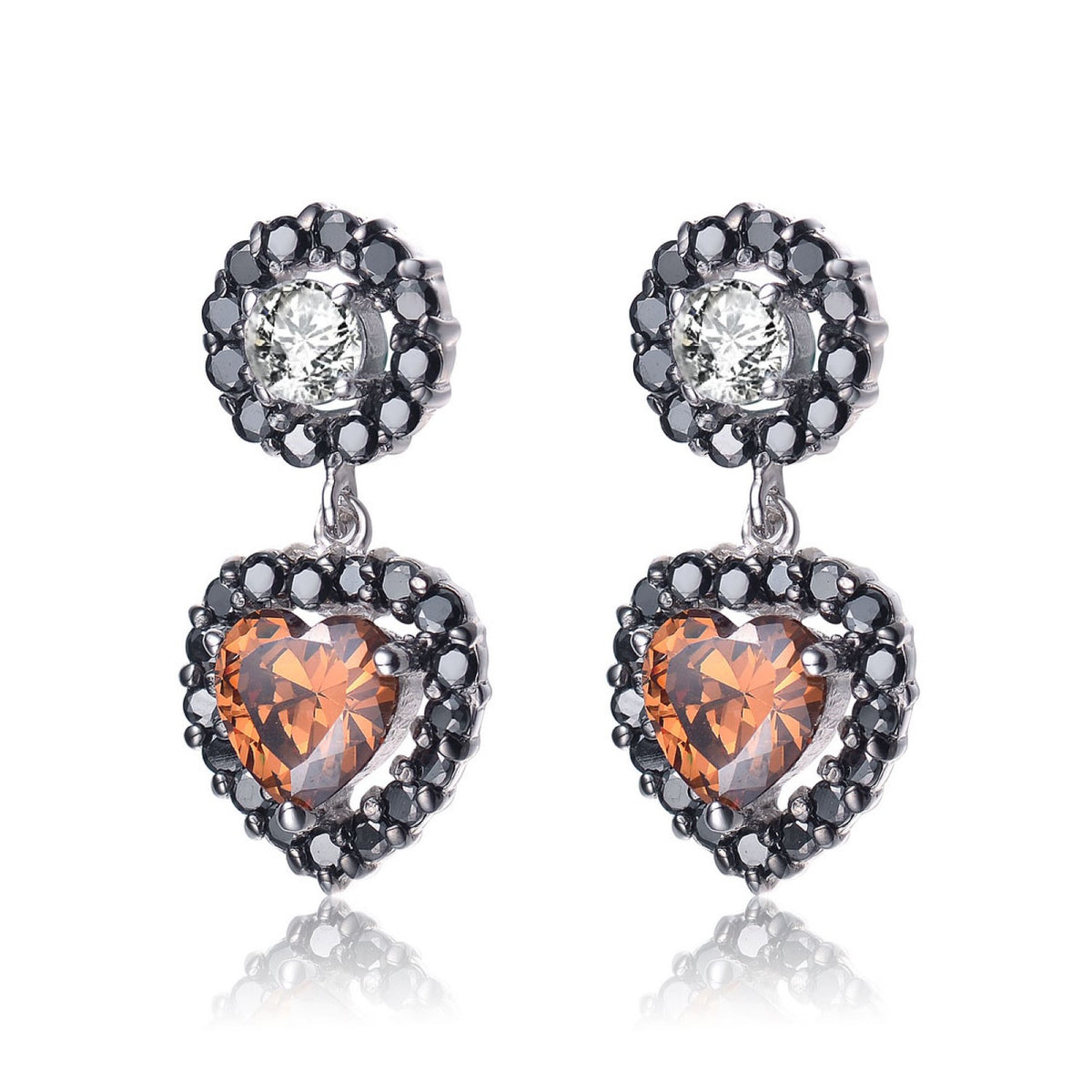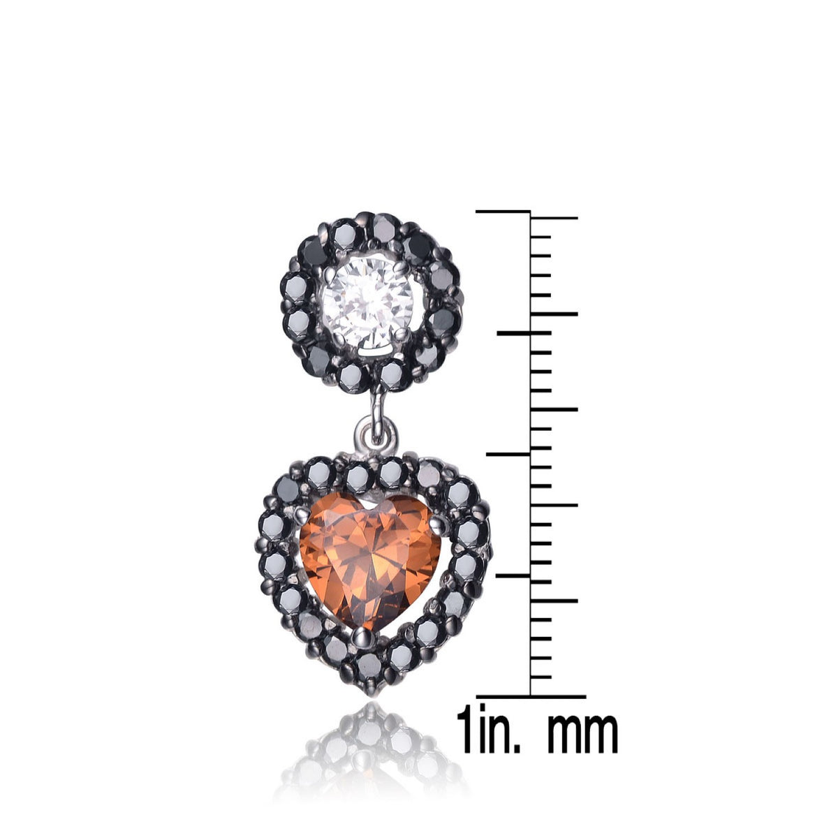 These dangle earrings are crafted from sterling silver and feature clear and copper cubic zirconia solitaires and heart-shaped stones.
