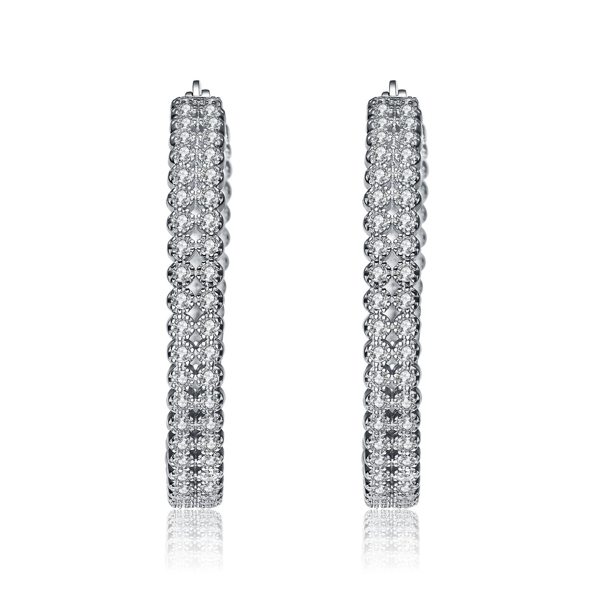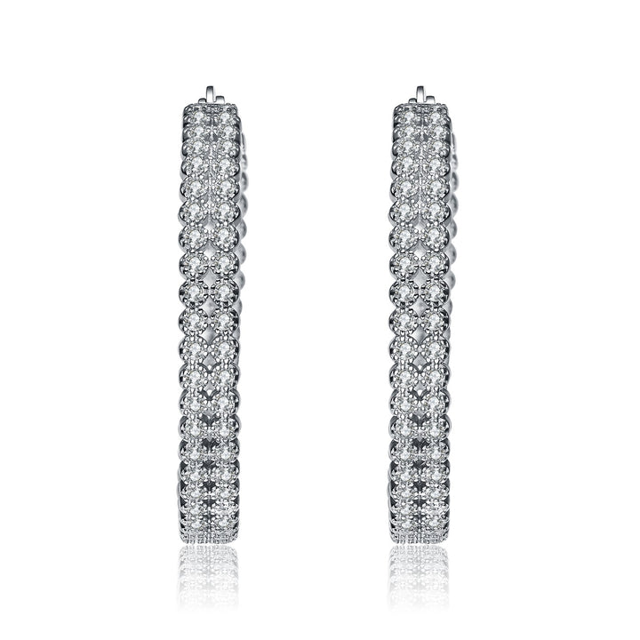 Crafted from .925 sterling silver with rhodium plating, these hoops are set with clear cubic zirconia.