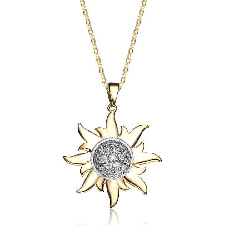Yellow Gold Plated White Cubic Zirconia Sun Shaped Pendant Necklace