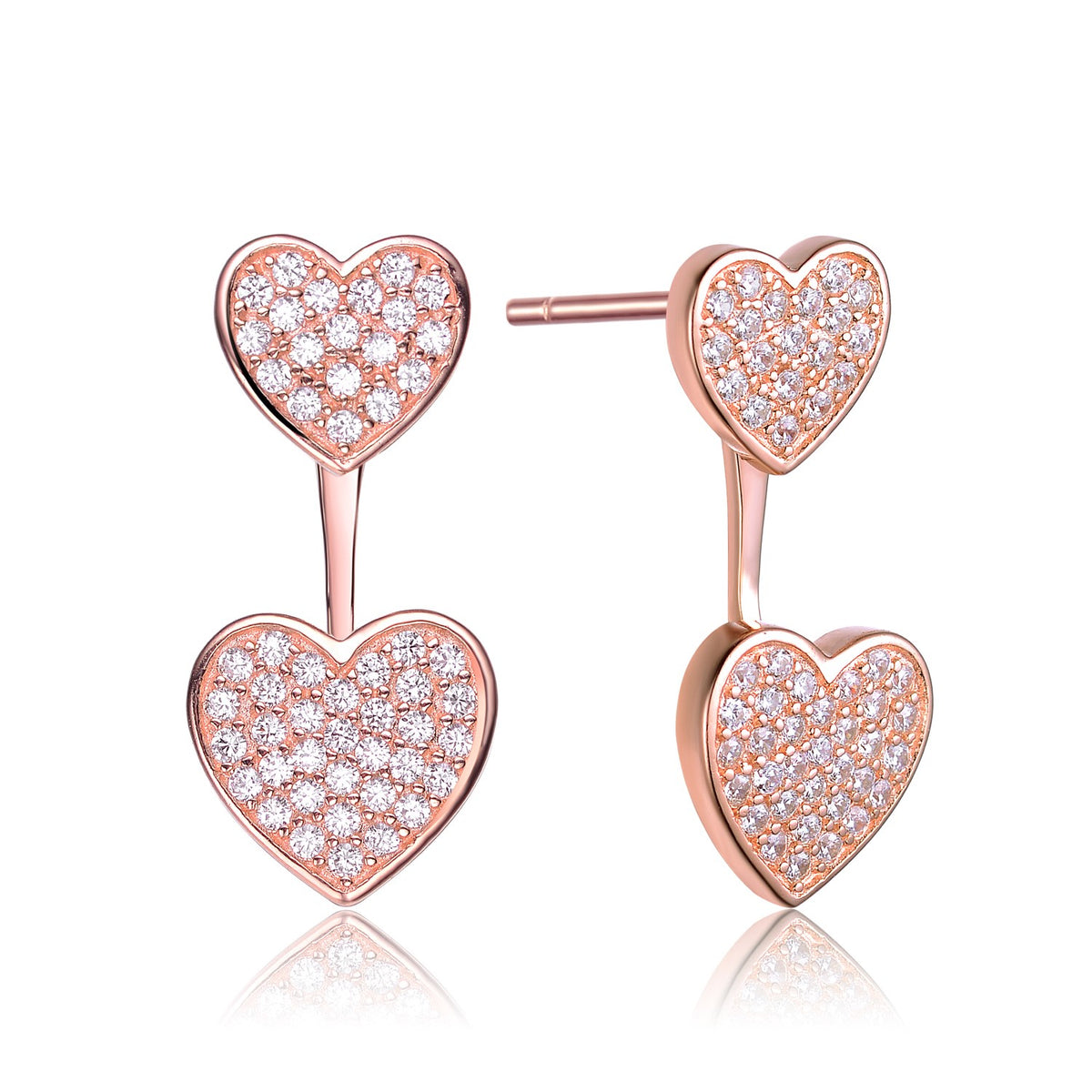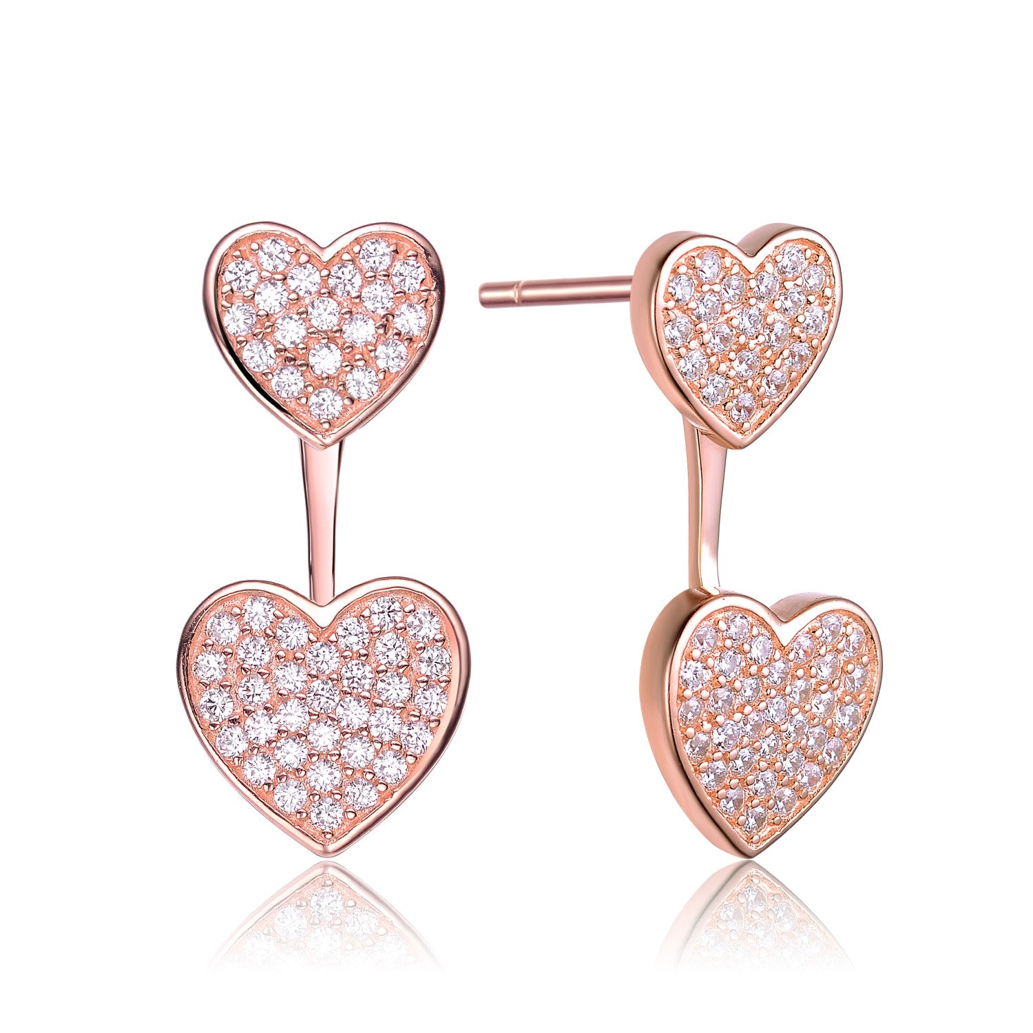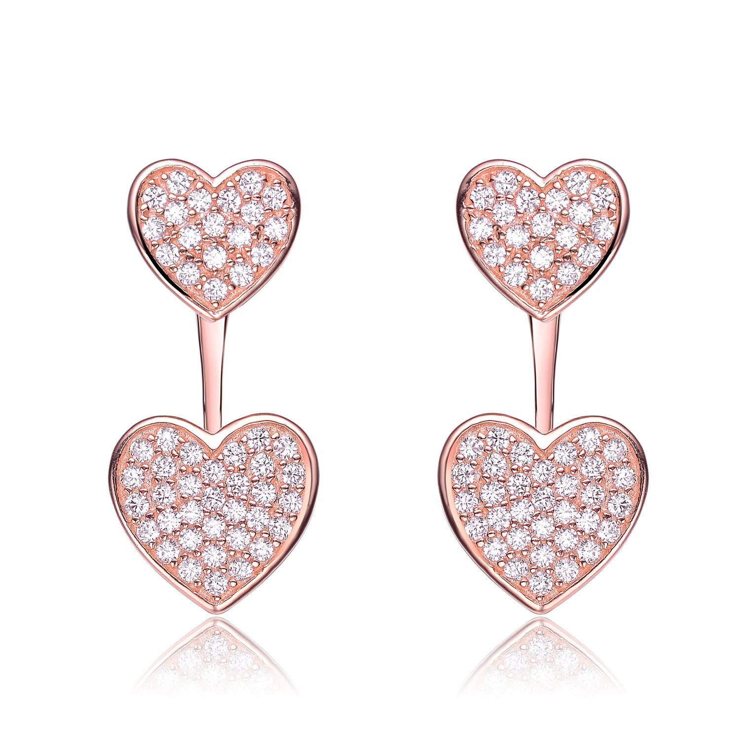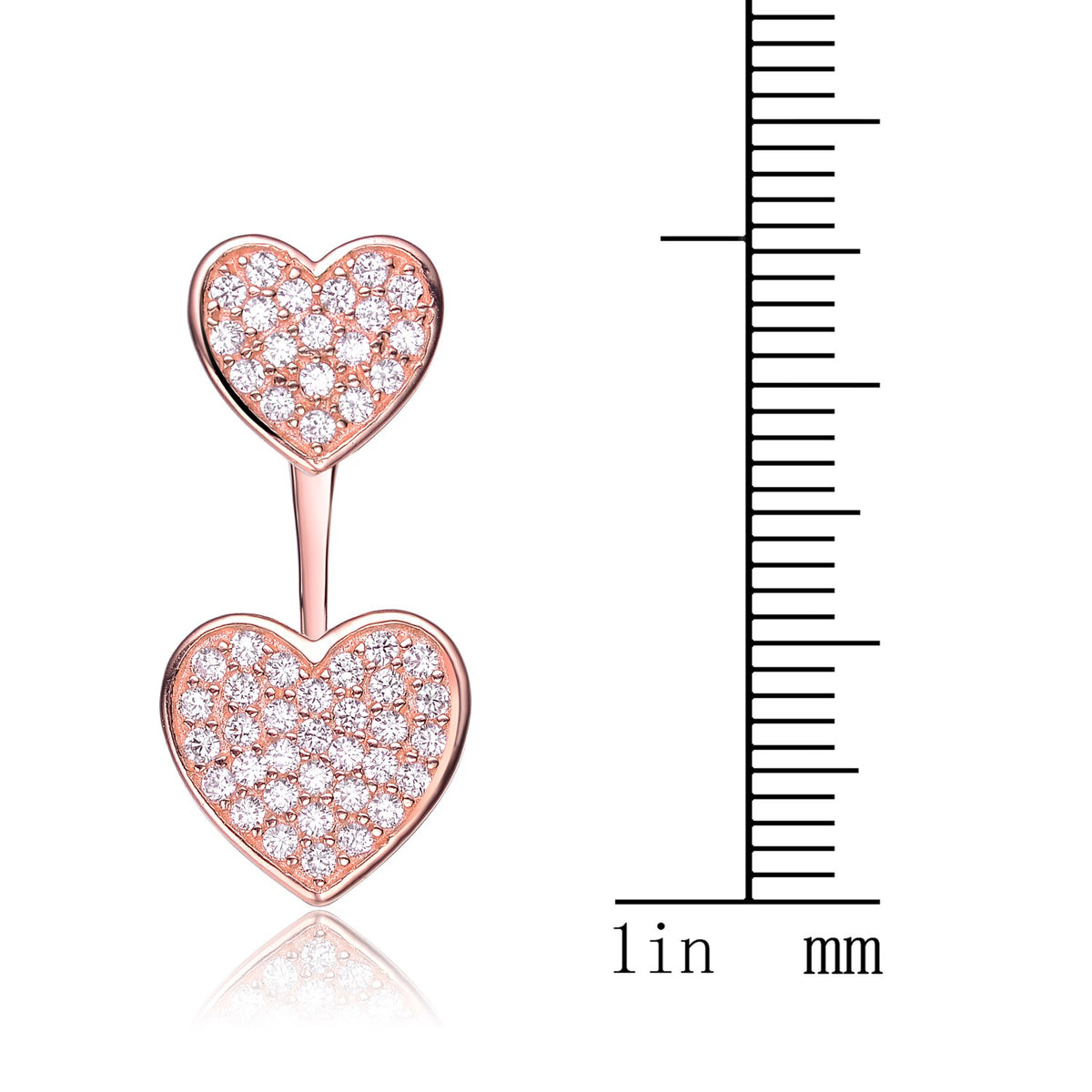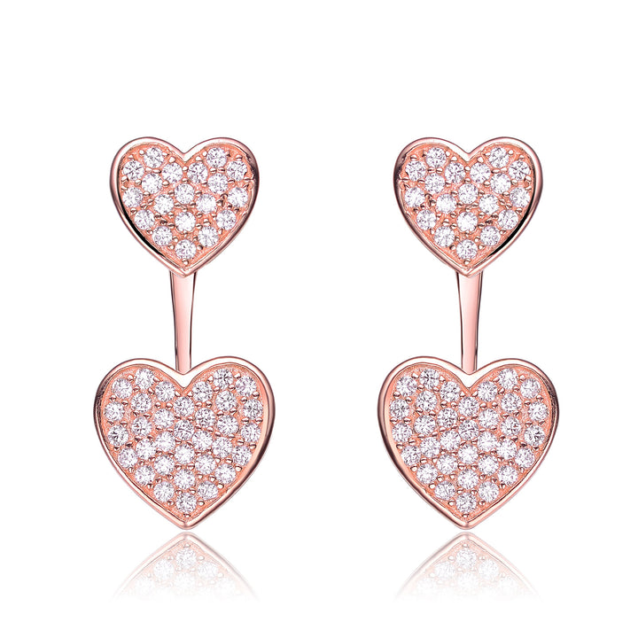 Sterling Silver Rose Gold Plated Cubic Zirconia Double Heart Jacket Earrings