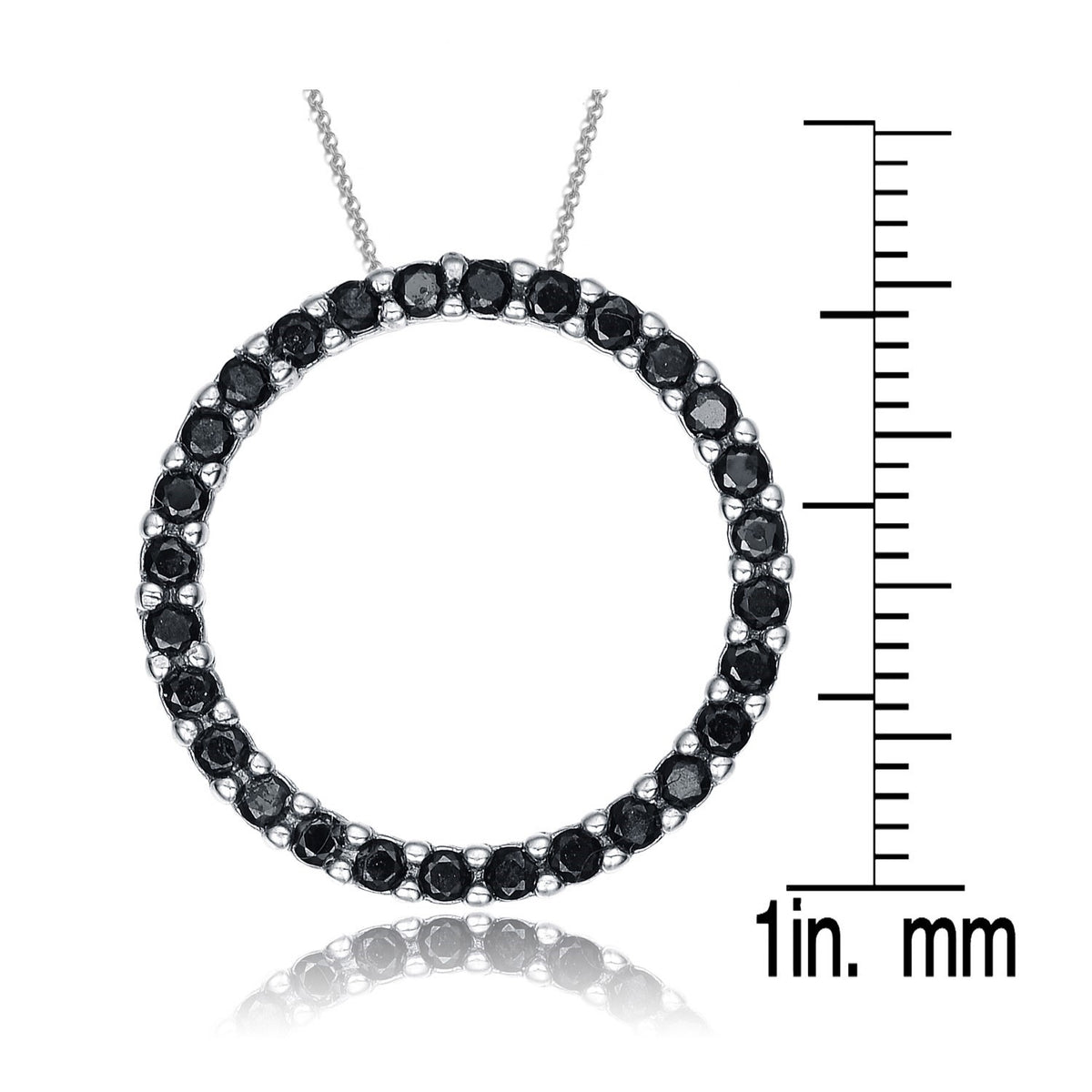 Sterling Silver Cubic Zirconia Black Round Circle Pendant Necklace
