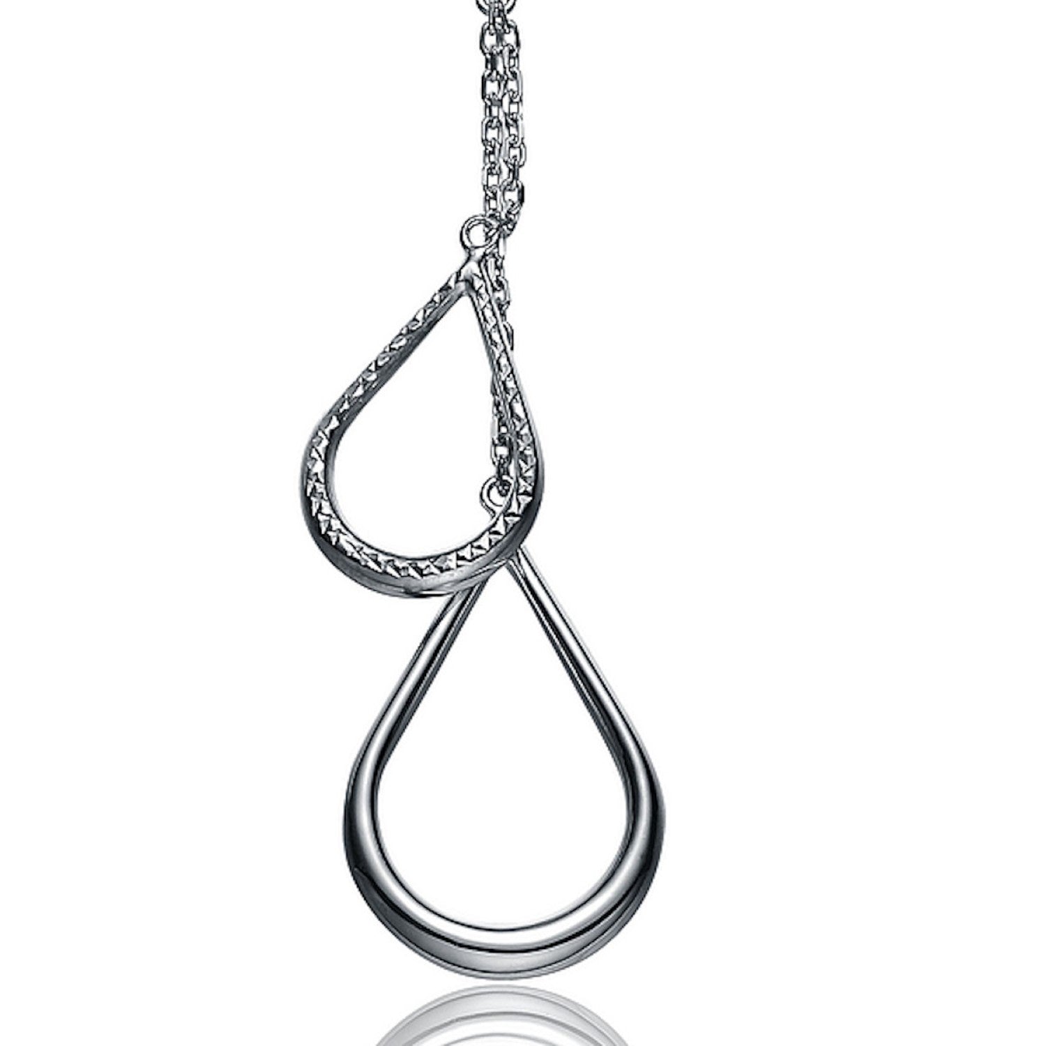 This Sterling Silver White Gold Plated Loop Pendant Necklace by Genevive Jewelry is a simply perfect accessory for any occasion. The teardrop shape and gentle touch of this piece will enhance any outfit, adding a touch of subtle elegance. Whether worn as a delicate accent or a statement piece, it is sure to capture attention.