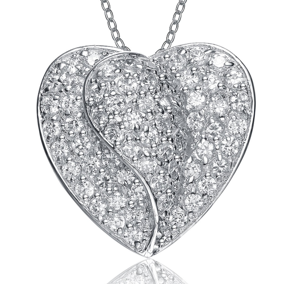 Sterling Silver Cubic Zirconia Heart Shape Dangling Pendant Necklace