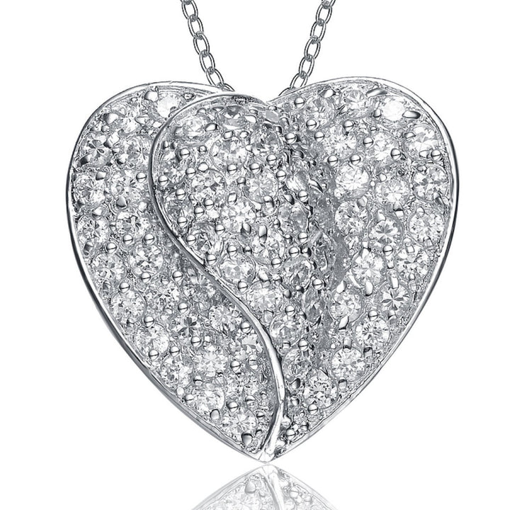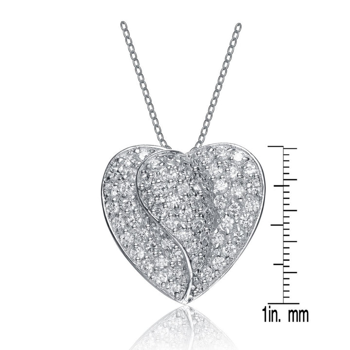 This pendant necklace is crafted from sterling silver, with a heart-shaped pendant set with white cubic zirconia in a pavé setting.