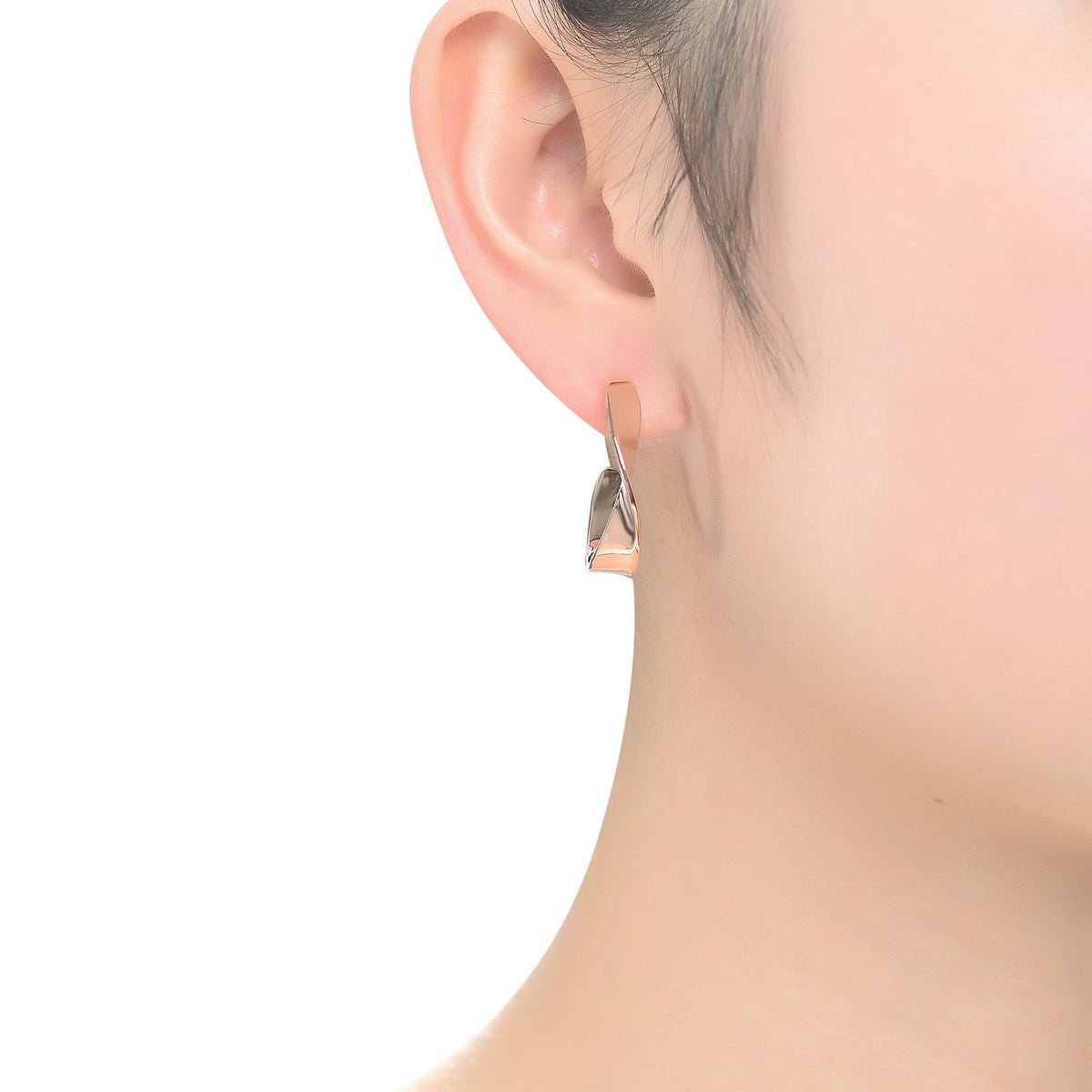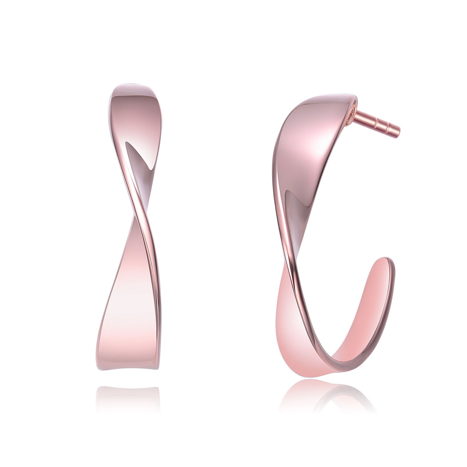 These twisted hoop earrings are crafted from .925 sterling silver with rose gold plating and are secured with a butterfly clasp.