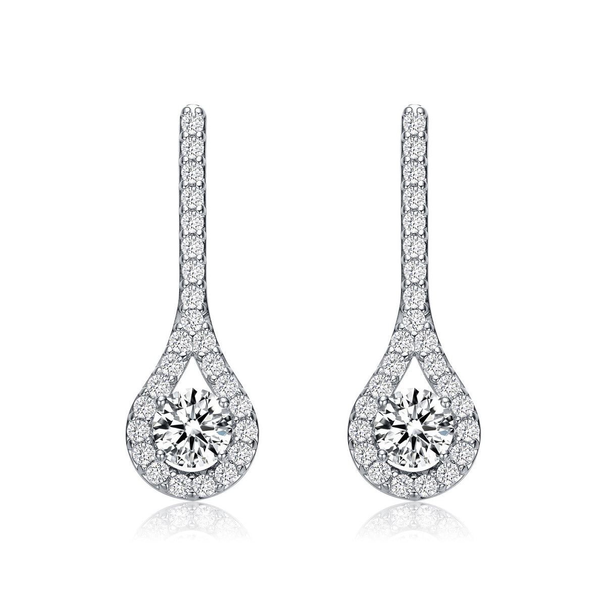 Sterling Silver Cubic Zirconia Solitaire Teardrop Earrings