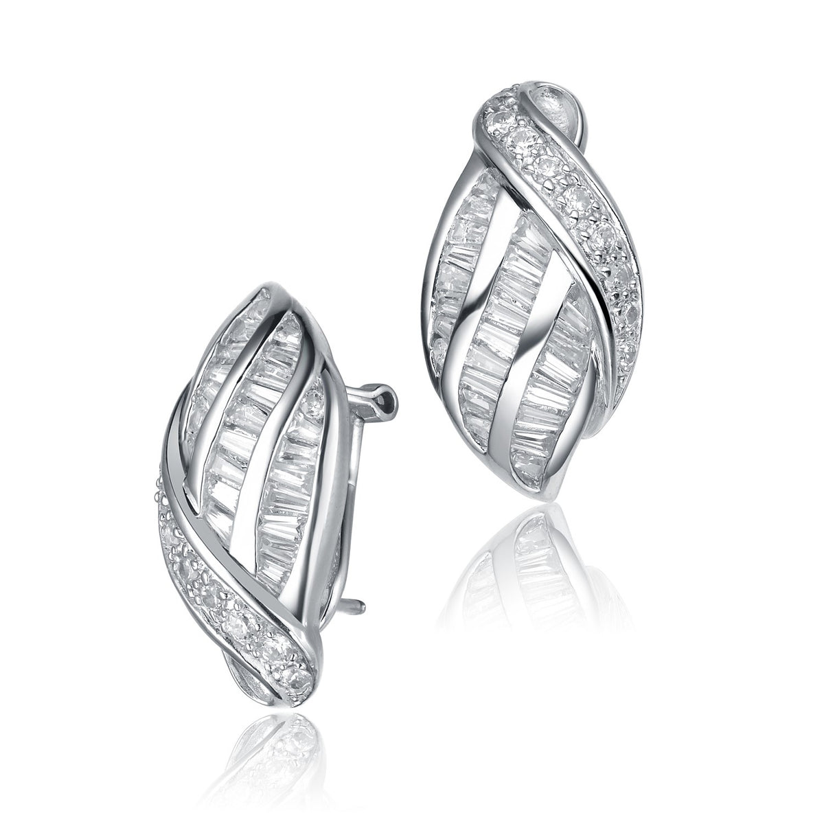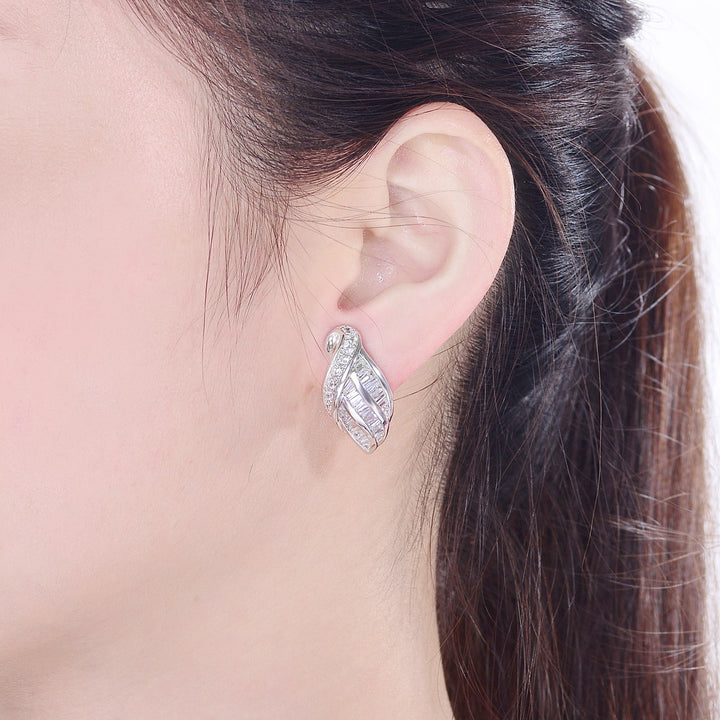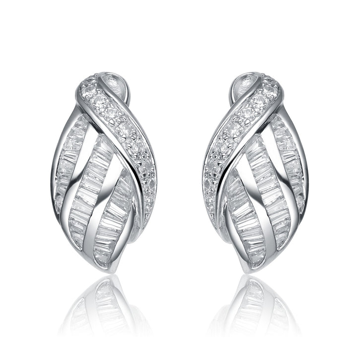 Sterling Silver White Gold Plated With Clear Cubic Zirconia Weaved Earrings