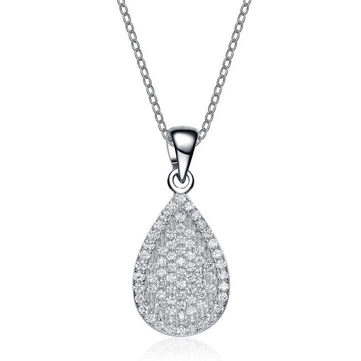 Sterling Silver White Gold Plated With Clear Cubic Zirconia Pear Drop Pendant