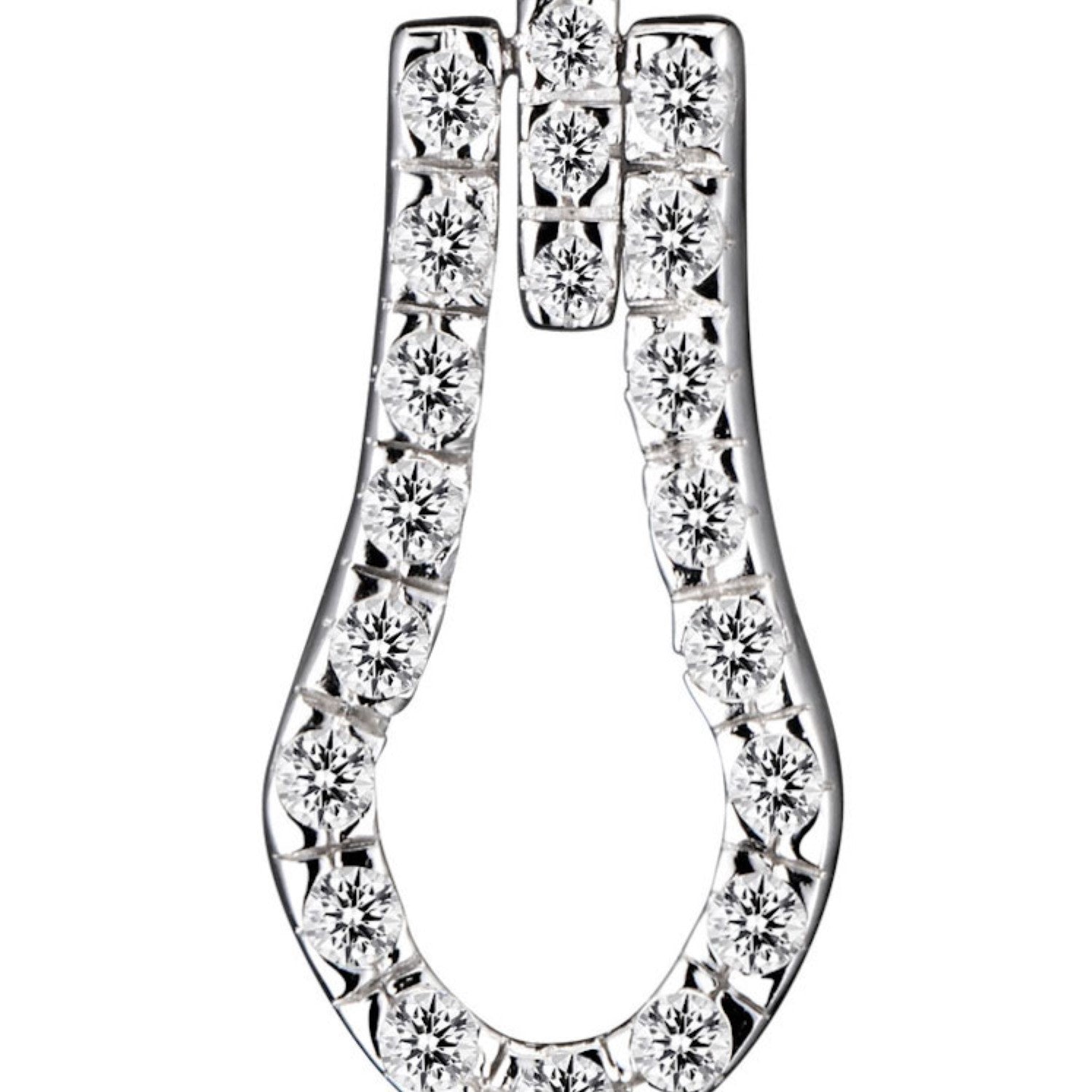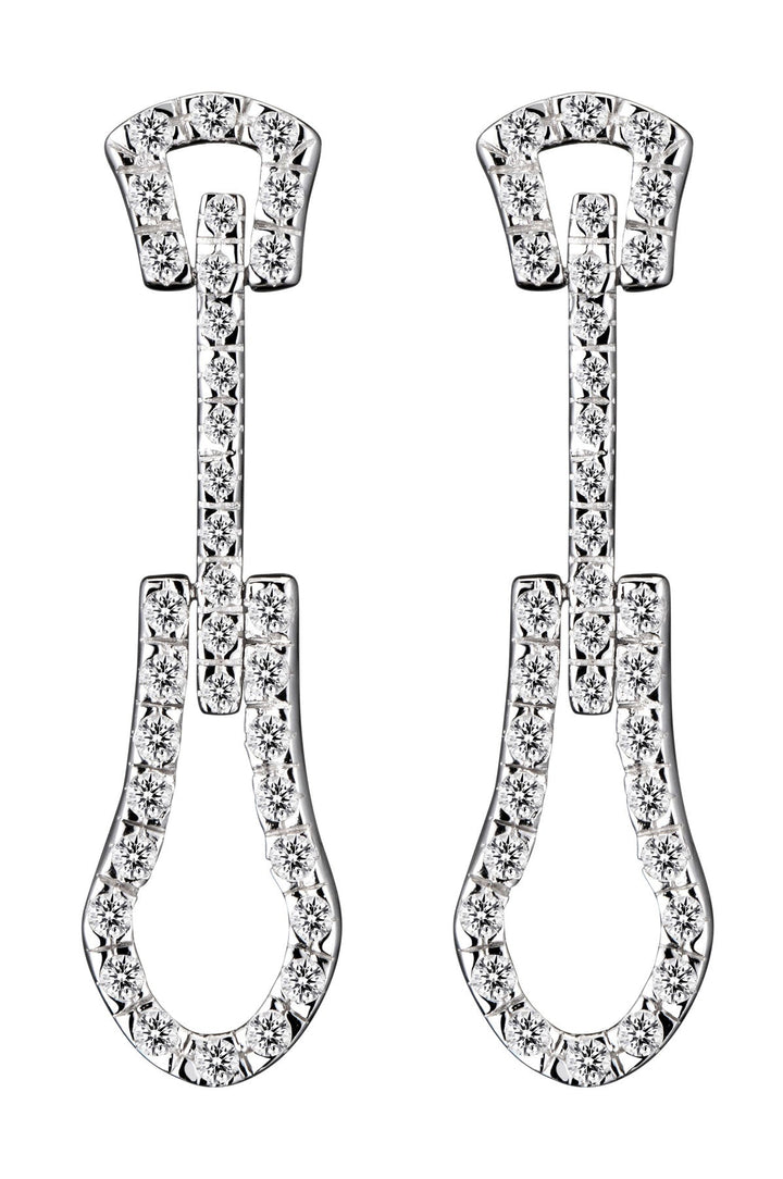 These dangle earrings are crafted from sterling silver and are set with cubic zirconia stones in a guitar shape.